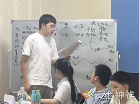 服务队成员运用一流的普通话水平,结合对文学作品的理解,为留守儿童讲述李白、陆游的诗词故事。课堂中,同学们能够用基本规范的普通话复述文学故事、用声情并茂的语言朗诵诗词,在丰富文学积累的同时摆脱了乡音带来的交流不便困扰。