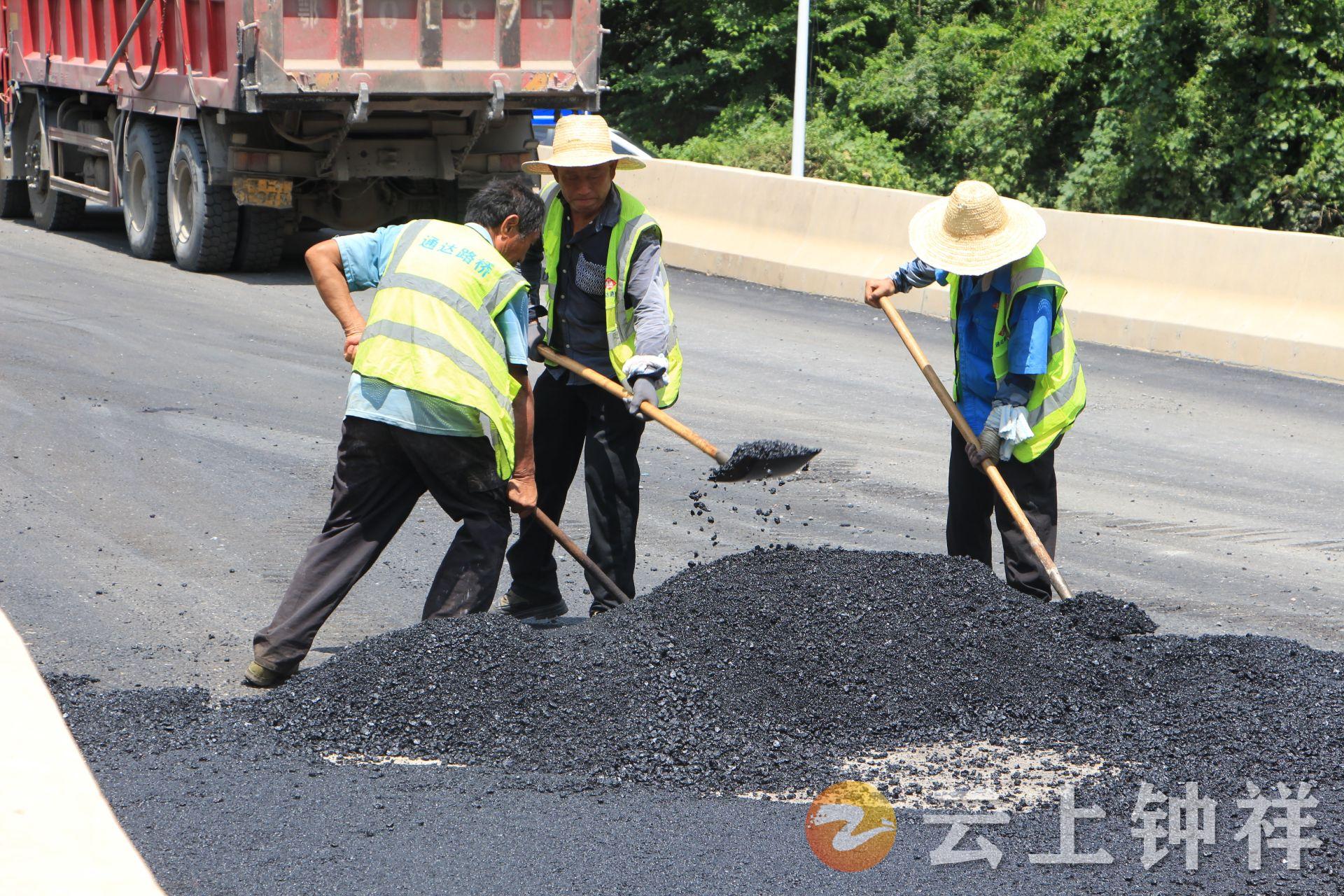 “我们实行‘早开工、晚收工、避午间’的错峰施工模式,避开高温时段,同时配备防暑药品和遮阳棚,在保证施工安全和质量的前提下抢进度。”钟祥市公路局副局长狄鸿雁擦着额头汗珠说。当前客店至黄仙洞段正全力冲刺沥青铺筑工作,确保7月底具备通车条件。