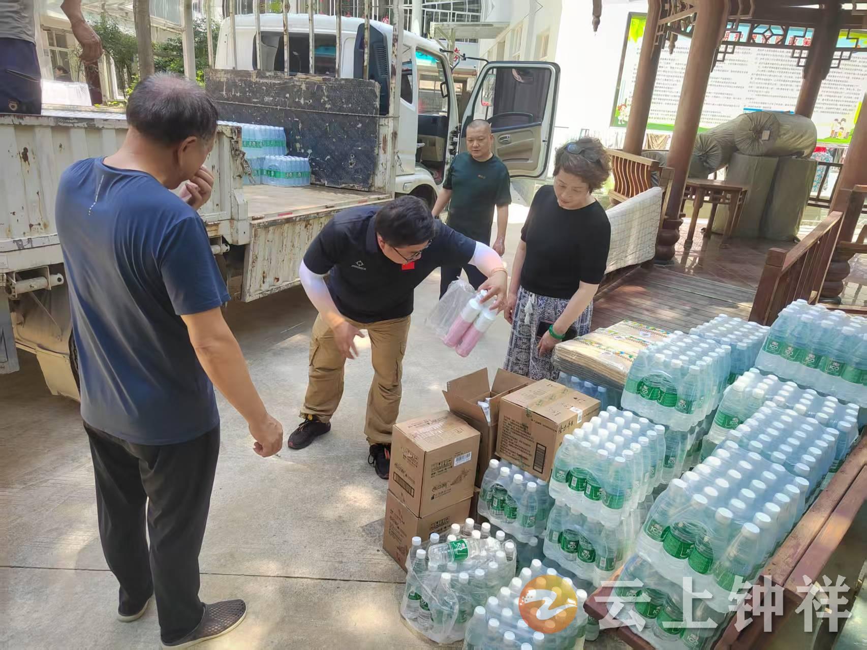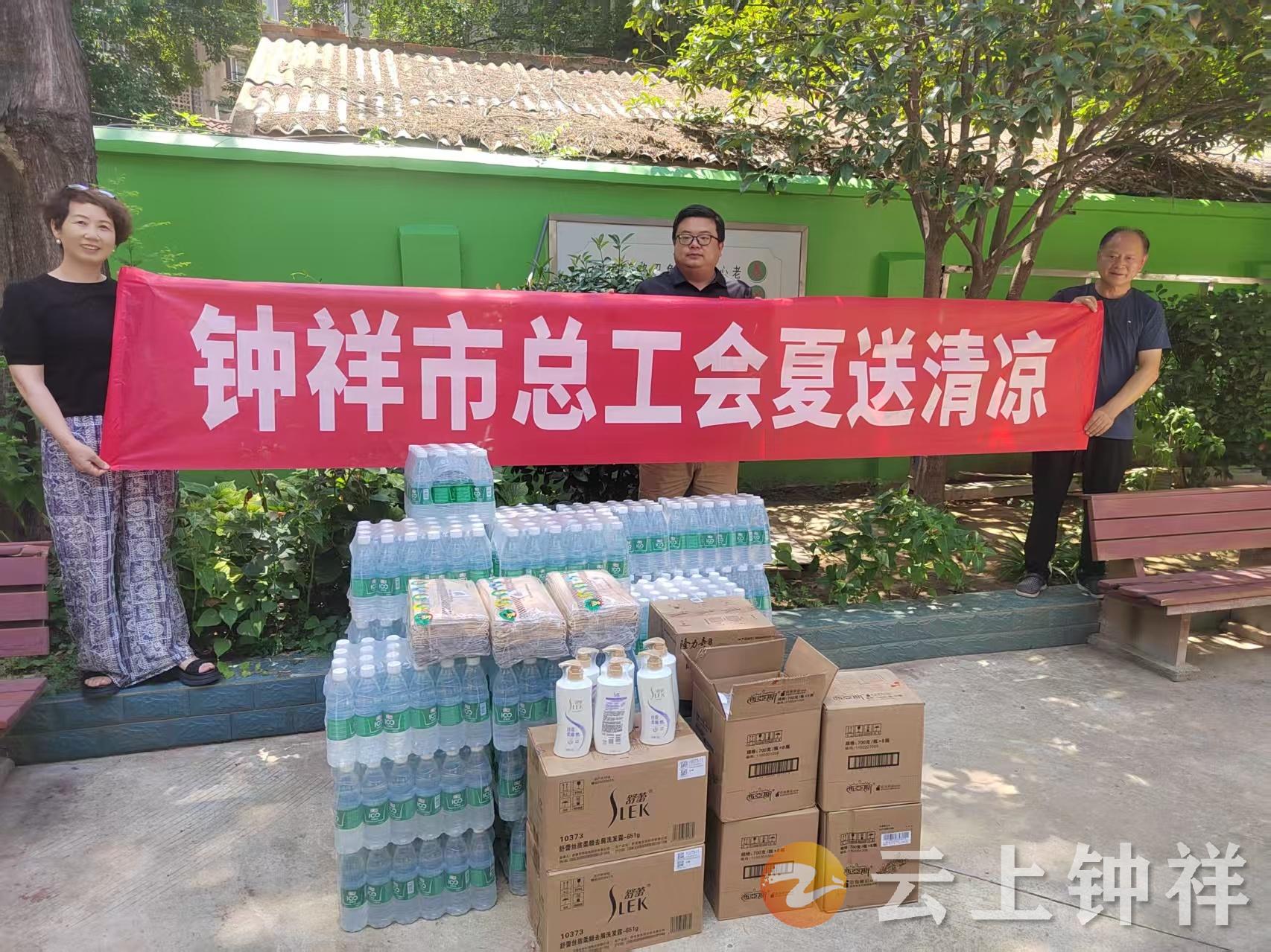 近日,钟祥市总工会为市茶庵亲和敬老院送来矿泉水、洗发液、沐浴露、花露水、毛巾等爱心物资,为老人们驱散暑热。
