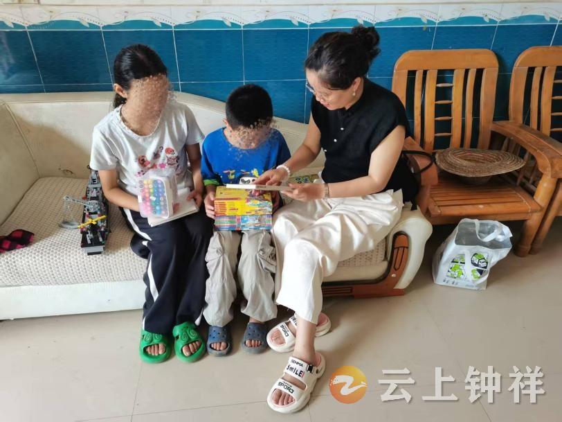 活动前,社工与志愿者精心筹备,将书包、笔记本、文具盒等学习用品打包成“开学大礼包”,还提前收集孩子们的心愿与画作,制作成温馨的“爱心卡”。走访时,大家带着礼包走进留守困境儿童家中,与他们亲切交流,关切询问他们暑期生活与新学期学习规划,亲手将礼包递到孩子手中,并通过交换爱心卡传递心意。