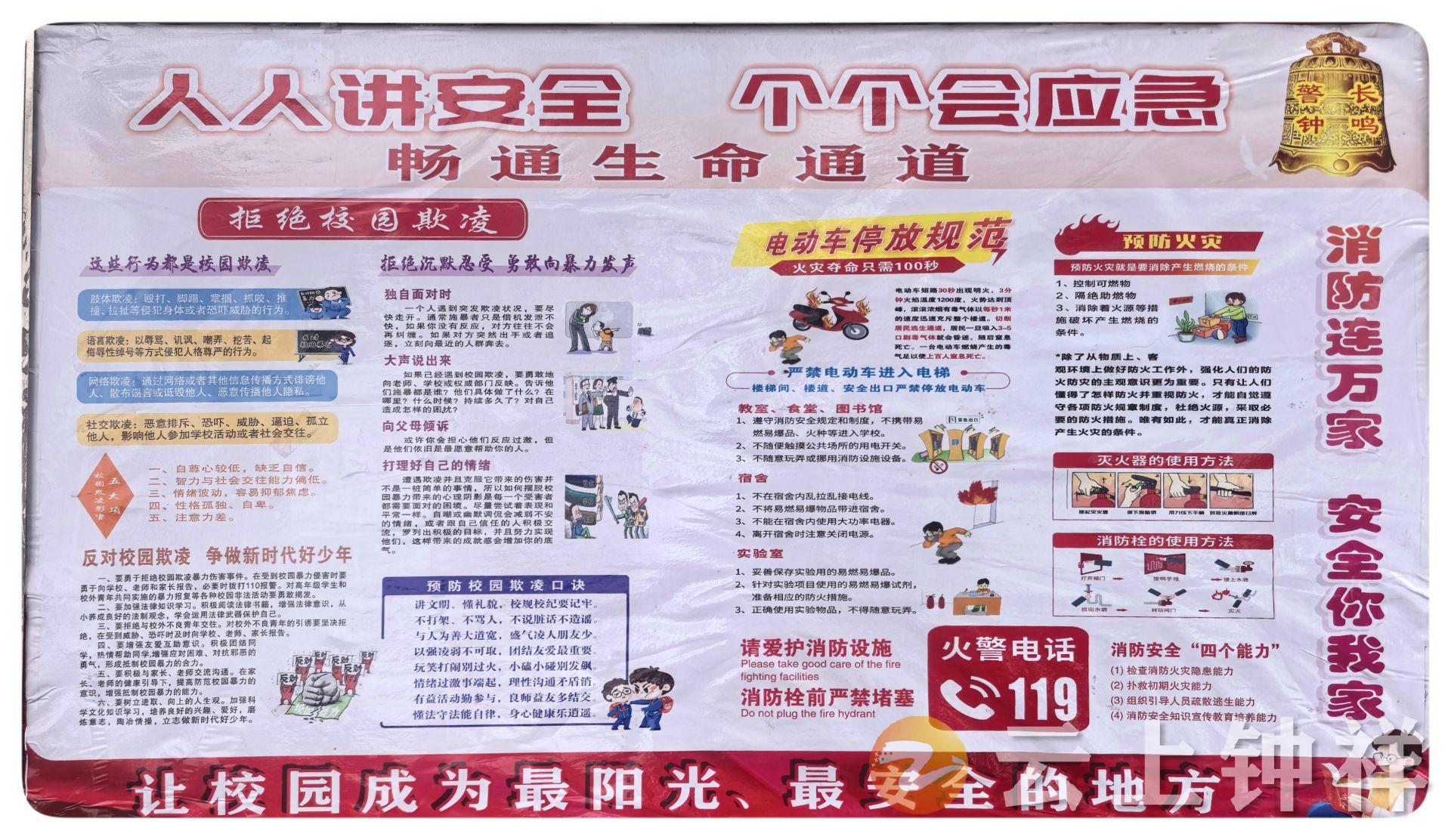 为让安全知识入脑入心,该校充分盘活校园宣传阵地,利用校园广播、电子显示屏、主题宣传展牌等载体,普及交通安全、电动车规范停放、火灾预防等日常安全要点,重点针对校园欺凌开展专项宣教,清晰梳理肢体欺凌、语言欺凌、社交欺凌等常见形式,深入剖析欺凌行为对受害者身心造成的伤害,引导学生树立“安全第一、拒绝欺凌”的正确观念,教会学生敢于对各类欺凌行为说“不”。