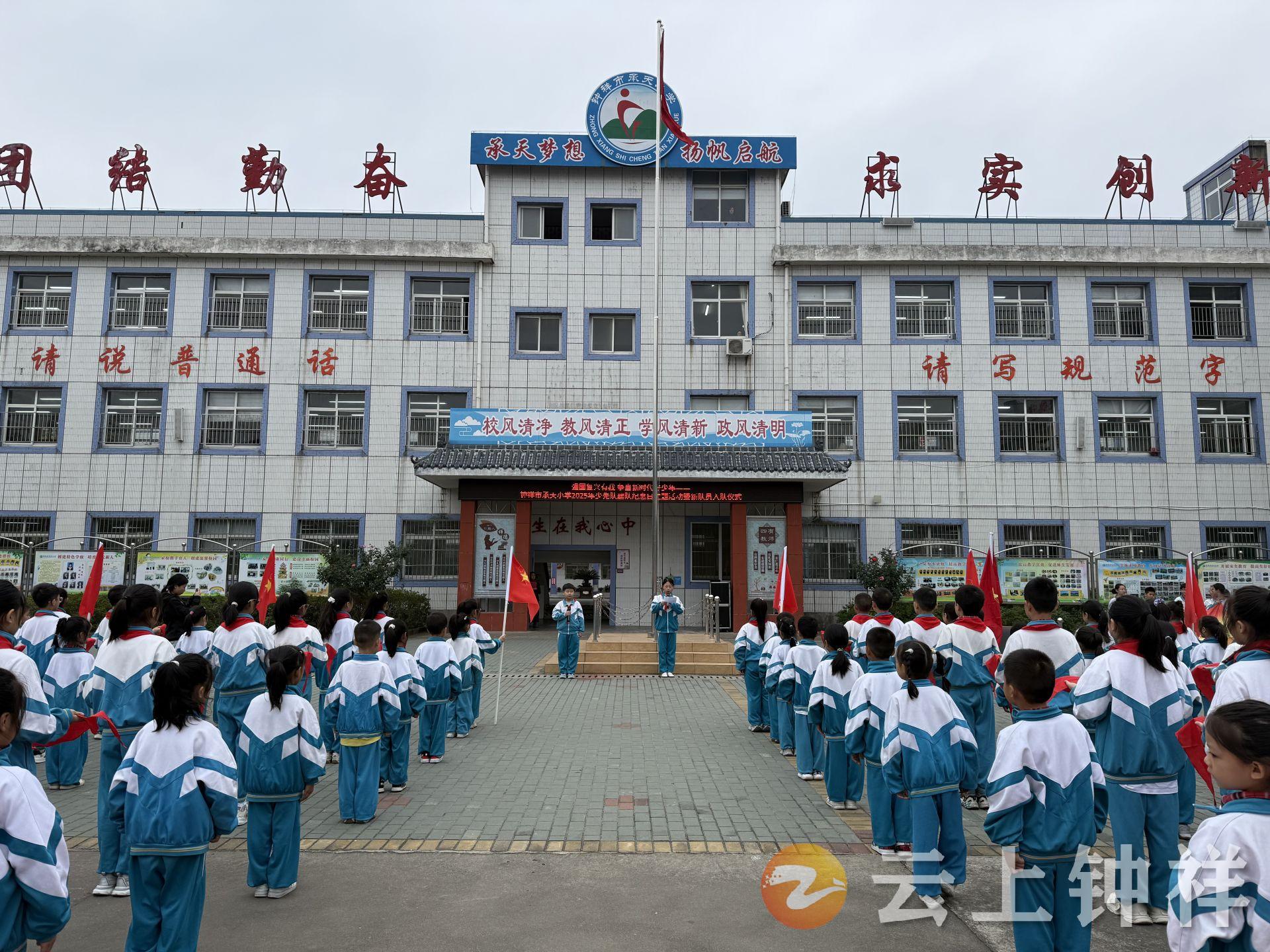仪式在庄严的《出旗曲》中启动,少先队大队旗手身着整齐队服,执旗稳步前行。随后,全体队员高唱《中国少年先锋队队歌》,嘹亮的歌声展现了新时代少年昂扬向上的精神风貌。