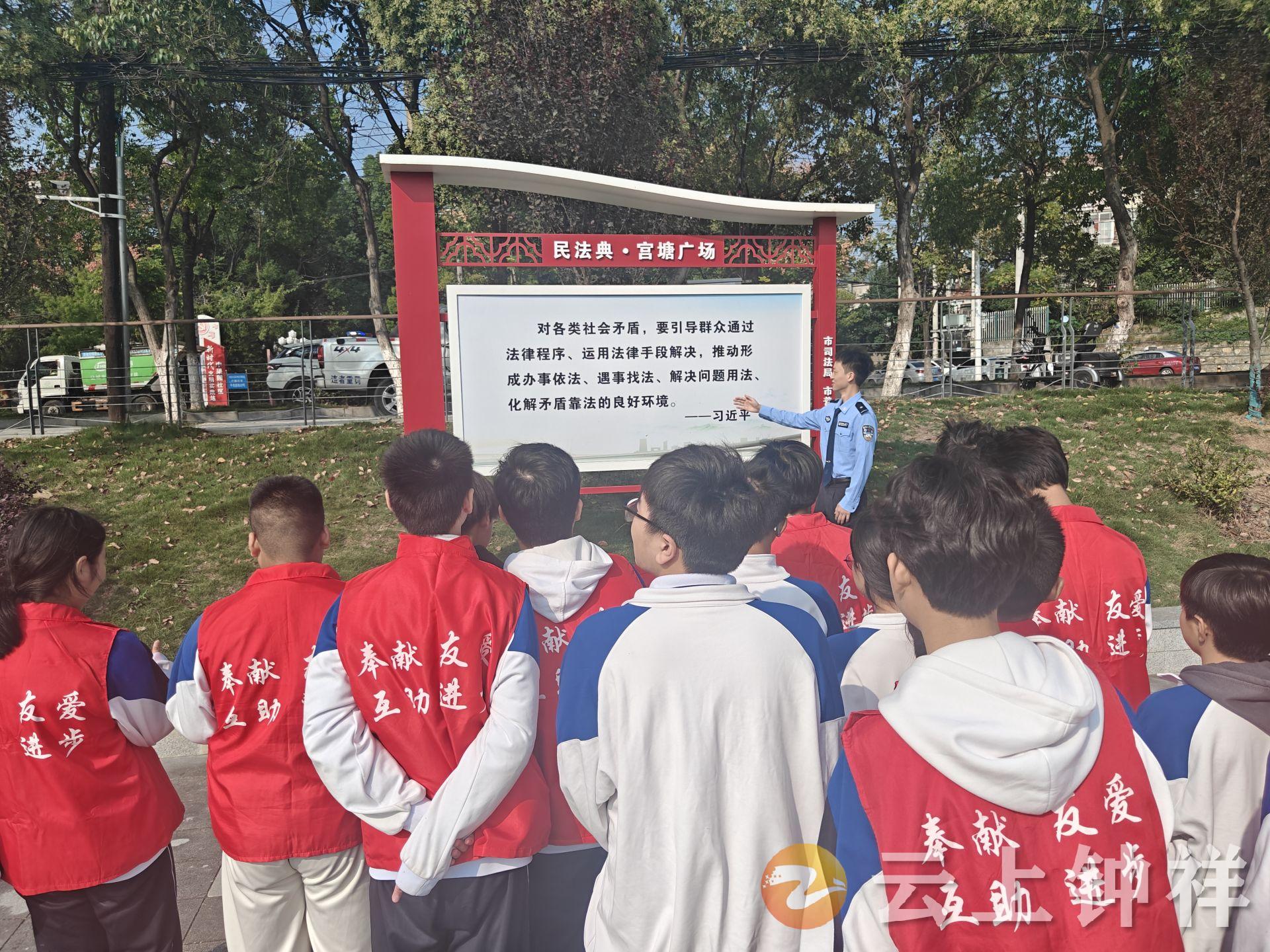 近日,钟祥四中教联体组织学生志愿者走进郢中街道宫塘社区,开展“学习民法典,防范诈骗与毒品”主题法治实践活动,以青春力量传递法治温暖。