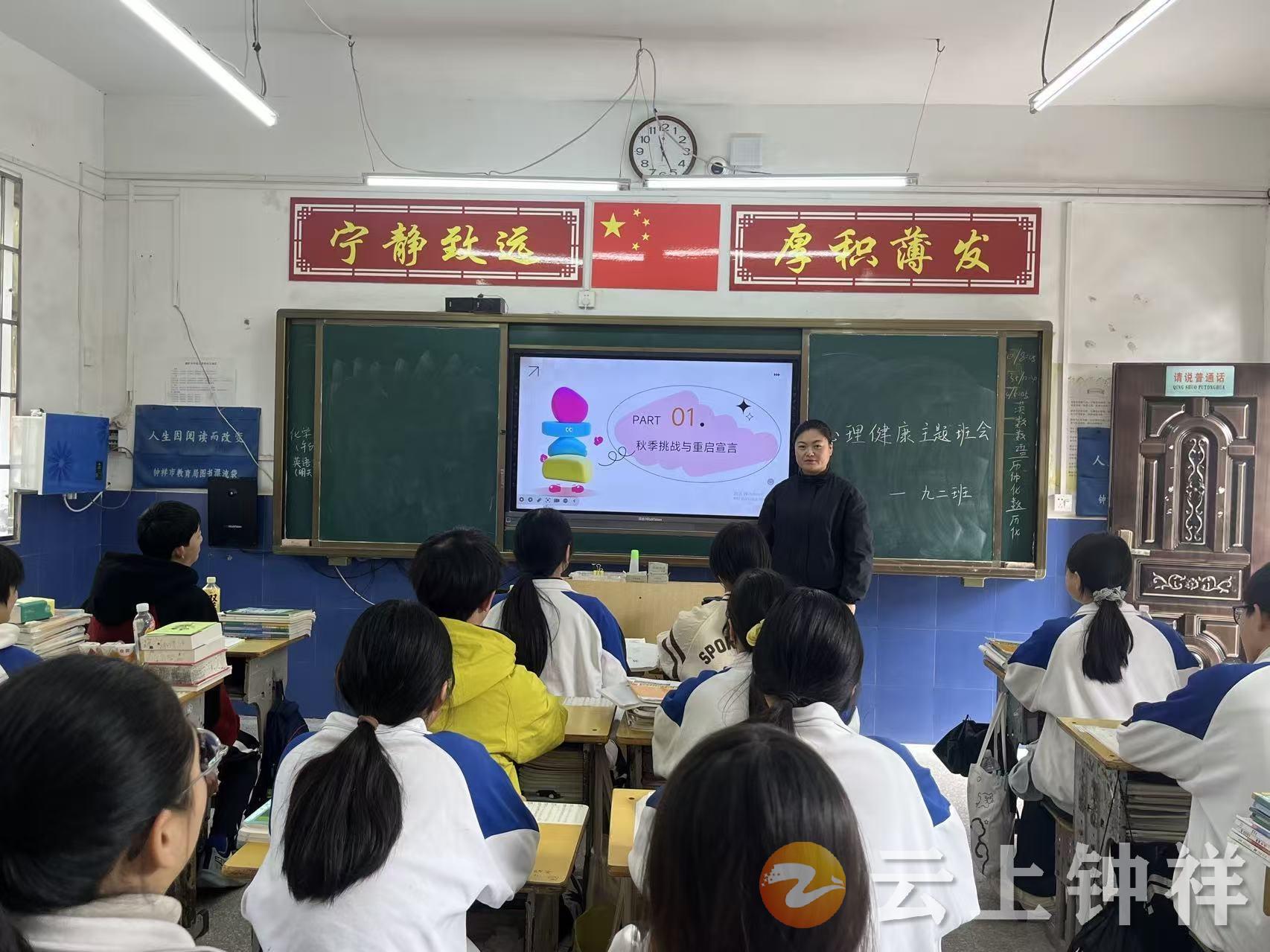 班会伊始,各班主任以温暖治愈的短视频引入主题。视频展现青少年在学习、生活中的常见心理困惑及积极应对后的成长蜕变,迅速吸引了学生的注意力,引发了情感共鸣。随后,班主任结合生动案例,深入浅出讲解心理健康的重要性,强调良好的心理状态是学业进步、人际交往和谐的基础。