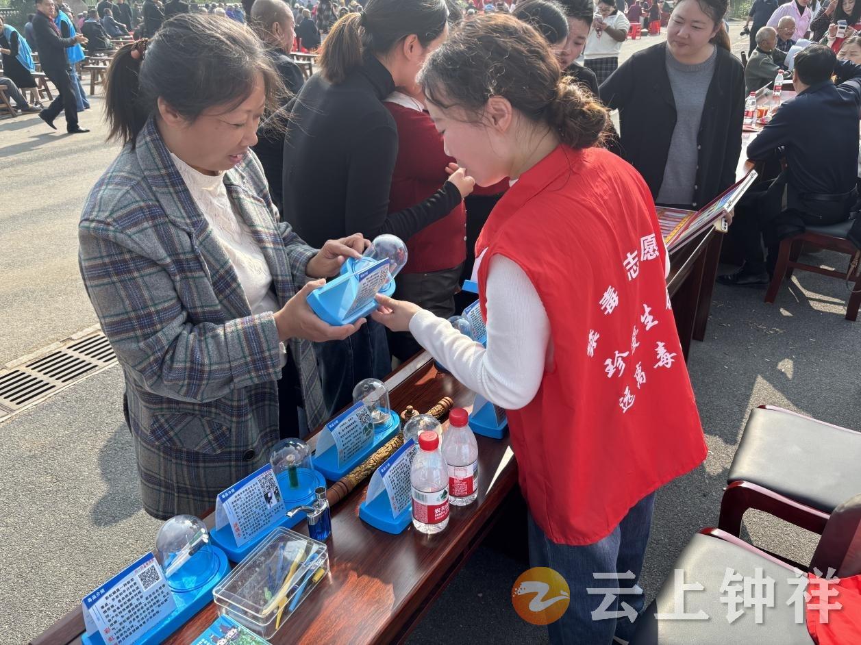 10月28日,在柴湖镇四新村举办的“长寿钟祥 情暖重阳 孝行四新”敬老活动现场,柴湖镇社区戒毒康复中心同步开展禁毒教育工作,将禁毒知识普及与老年群体关爱相结合,为辖区群众送上节日温暖与平安守护。