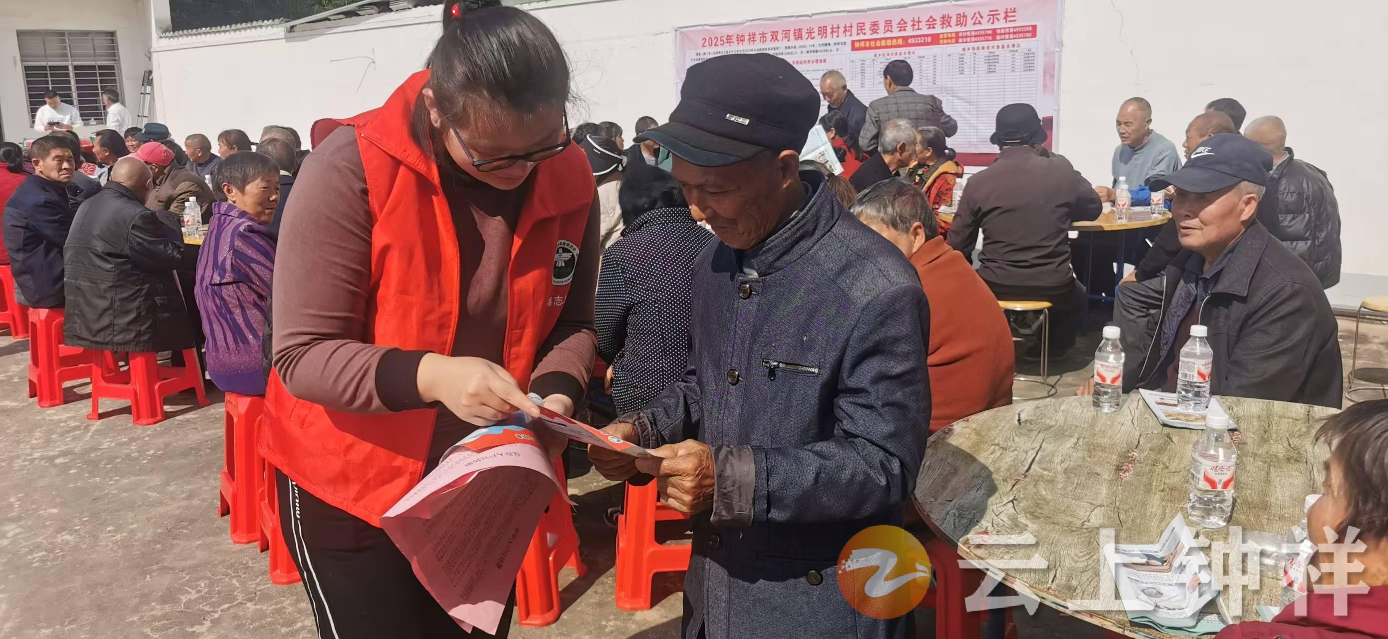 重阳敬老节,禁毒正当时。10月28日,双河镇平安建设办联合新时代文明实践站、派出所、禁毒社工及志愿者,借助光明村举办重阳节活动暨积分制奖励大会的契机,开展了一场以“重阳话安康 禁毒伴我行”为主题的特色禁毒宣传活动,将节日温情与禁毒宣传巧妙融合,为当地老年群体筑牢禁毒思想防线。