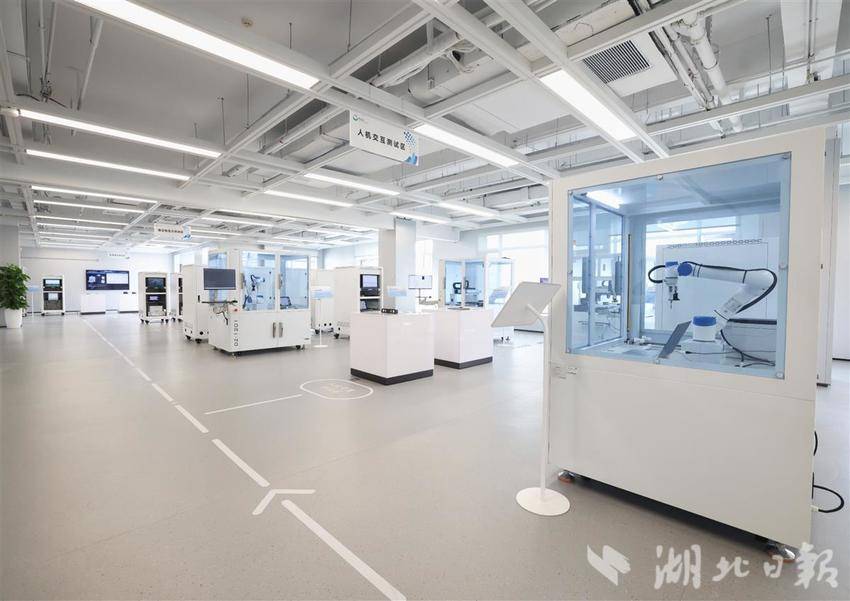 星汉实验室内,工作人员通过六轴机械臂模拟用户的真实操作,进行人机交互测试。(湖北日报全媒记者 陈少哲 摄)