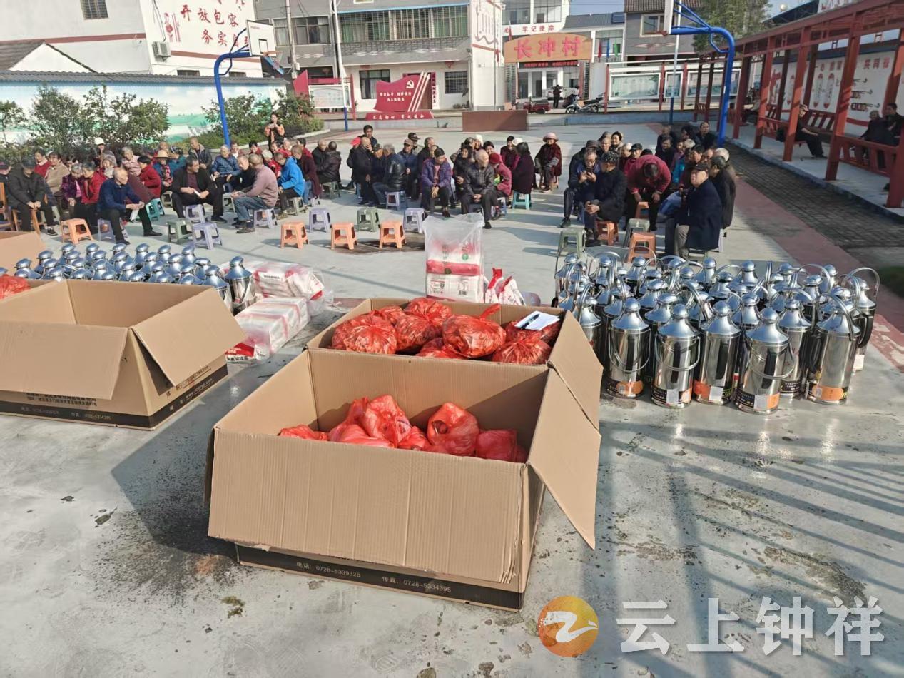 活动当天,网格员和志愿者们一早就开始忙碌,布置场地、分装礼包。每份礼物都经过精心准备,既有实用的保温瓶、毛巾,又有象征健康长寿的面条,还有本村特产羊肚菌柄,满载着对老人们的惦念与祝福。