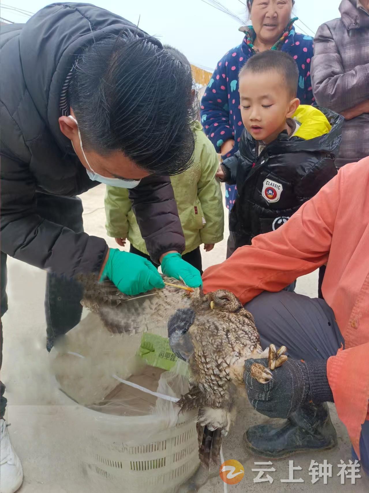 12月7日,旧口镇永胜村村民在田间发现一只翅膀受伤的猫头鹰,经村民、镇政府、动物防检工作组的爱心接力救助,受伤猫头鹰已顺利重返自然。