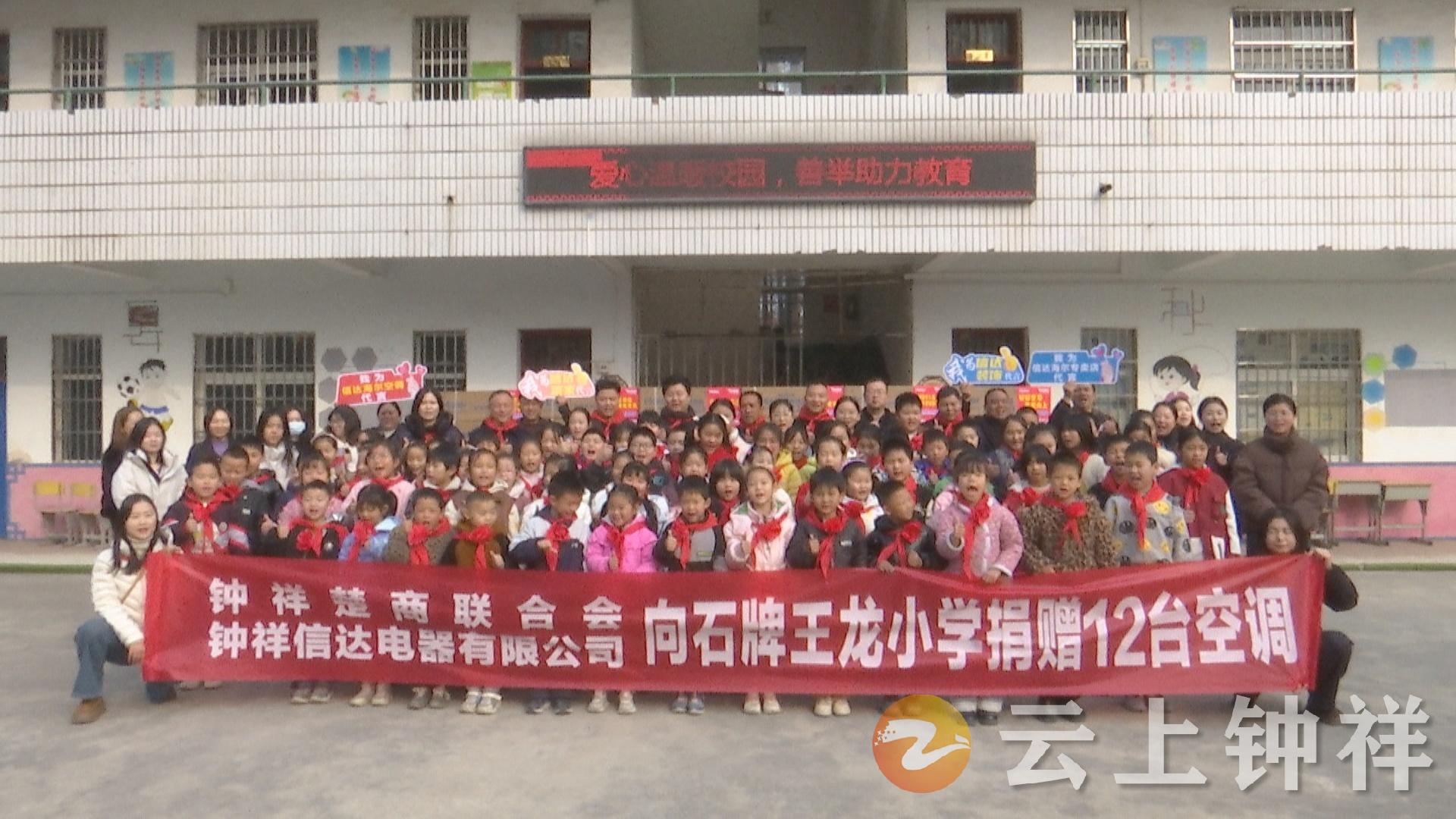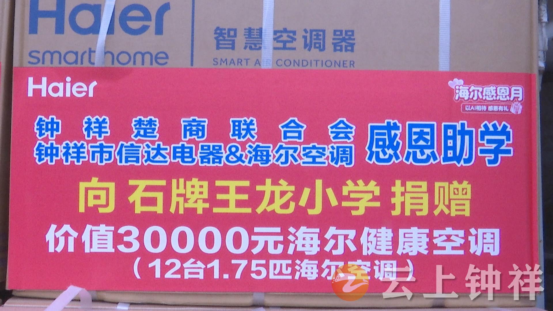 12月10日,钟祥楚商联合会联合钟祥市信达电器有限公司,将价值3万多元的12台海尔空调设备,捐赠给石牌镇王龙小学,为该校师生送去了冬日的温暖。