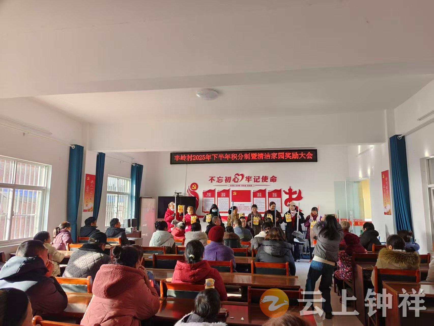 12月14日,丰乐镇丰岭村召开积分制暨“清洁家园”奖励大会,50余名优秀农户代表、村“两委”班子及包村干部齐聚一堂,共同总结环境整治成果,展望乡村建设新图景。