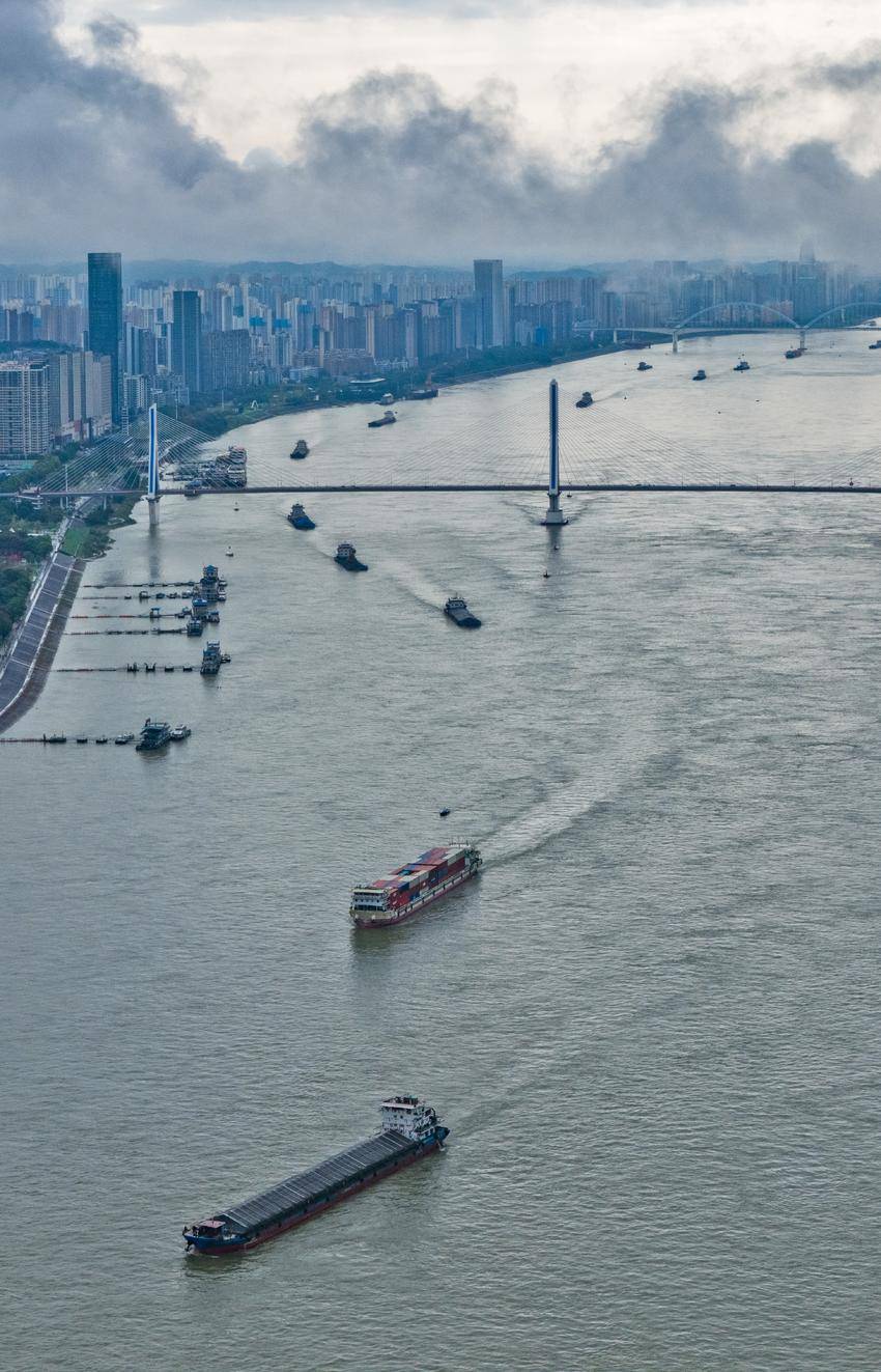 长江宜昌段“黄金水道”运输忙。(湖北日报全媒记者 刘曙松 摄)