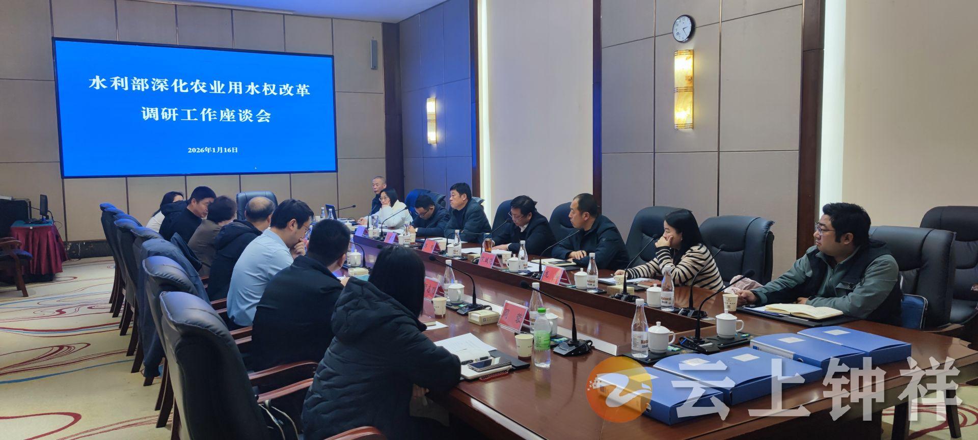 1月15日至16日,水利部综合事业局副局长付自龙一行来到钟祥,调研农业用水权改革工作。省水利厅副厅长王云鹏,荆门市副市长江稳,钟祥市委副书记、市委政法委书记粟建湘等参加调研。