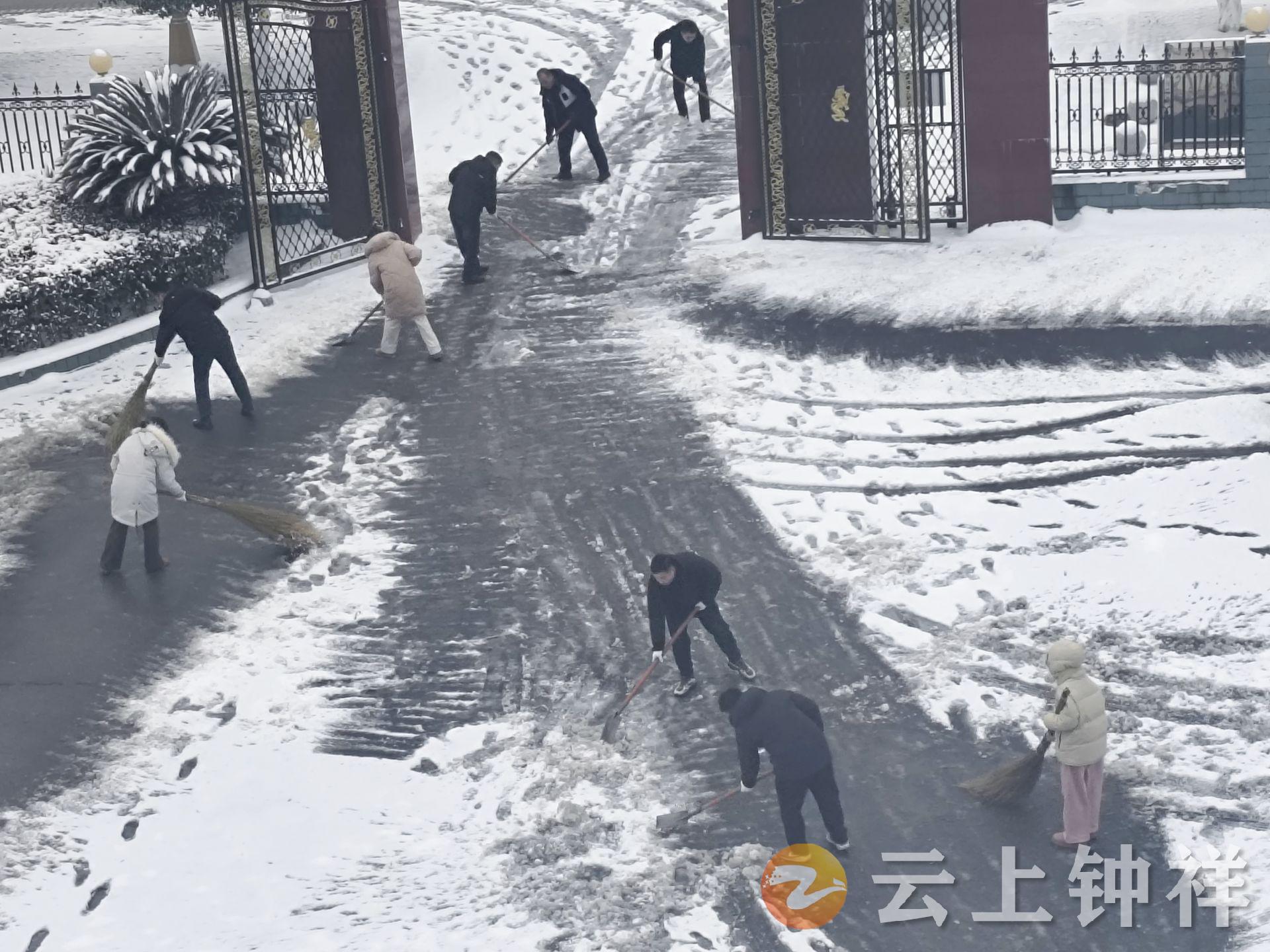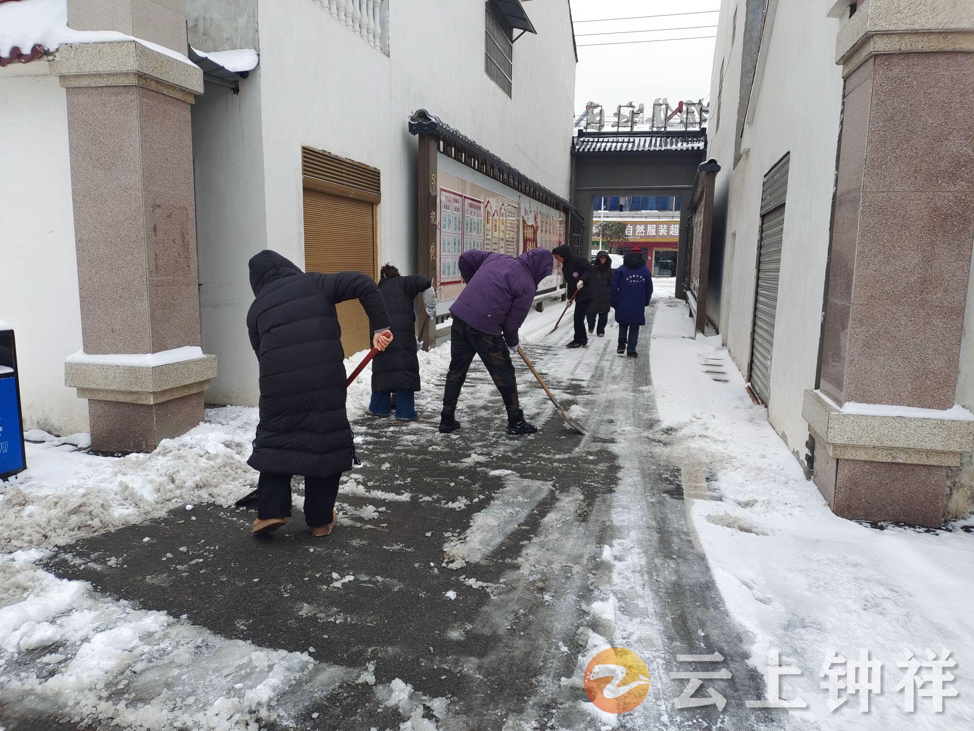 20日上午9时,镇机关干部、党员志愿者100余人迅速集结,在镇党委、政府主要领导带头示范下,手持铁锹、雪铲、扫帚等工具,按照预先划分的责任区域,奔赴镇区主干道、重要路口、桥梁、农贸市场出入口及便民服务中心广场等重点地段,全力开展扫雪除冰工作。