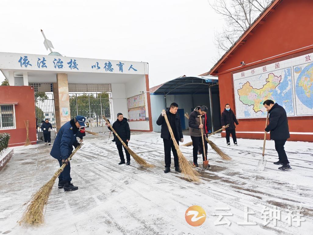 学校党员干部以雪为令、带头冲锋,其他教职工闻令而动、主动参战,大家手持铁锹、扫帚等工具,重点清扫主干道、教学楼出入口、食堂台阶等关键区域。寒风中,大家分工明确、配合默契,有的弯腰清扫浮雪,有的挥铲铲除压实的积雪,忙碌的身影在白雪映衬下格外显眼。经过两个多小时奋战,校园主要通行区域积雪全部清除完毕,为正常教学秩序的开展提供了有力保障,让冬日校园暖意融融。