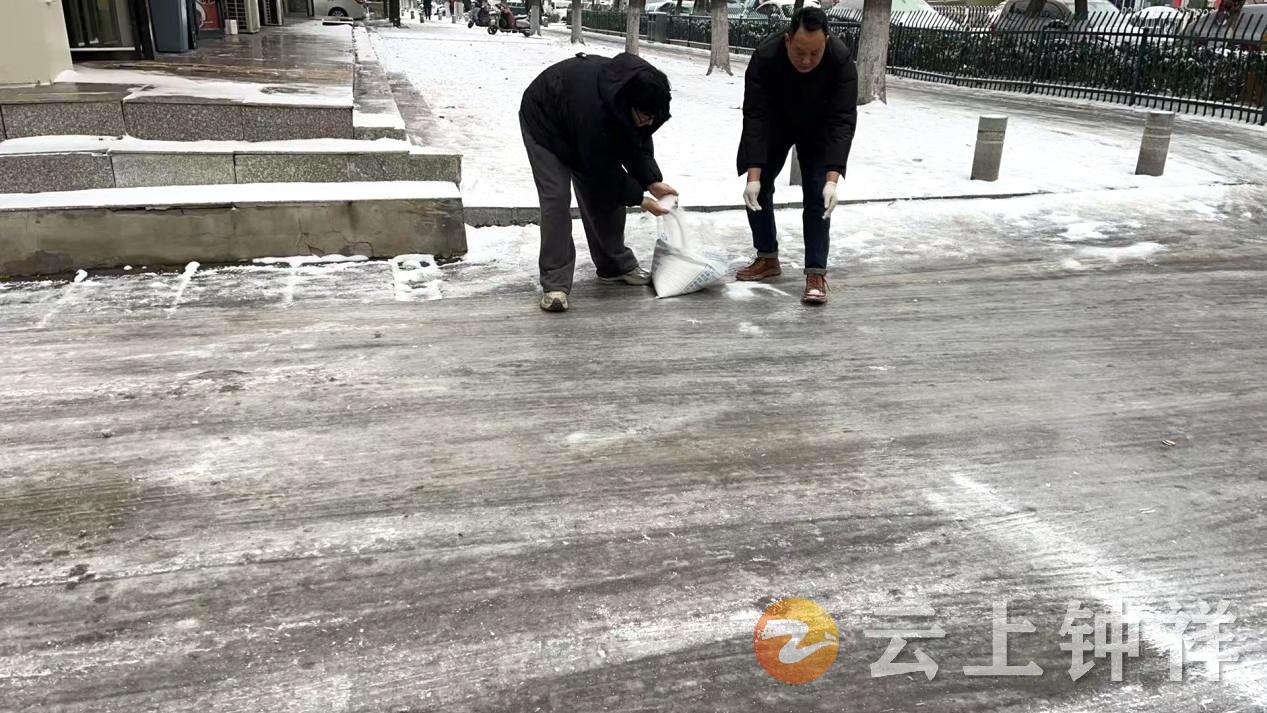 该社区工作人员顶风冒寒,在辖区主干道、坡道等关键路段科学撒布融雪盐,加速冰雪消融,及时清除路面浮冰,全力保障通行安全。同时,社区工作人员重点对办事大厅门前通道、台阶进行了彻底清扫并铺设防滑垫,贴心守护居民往来脚步。