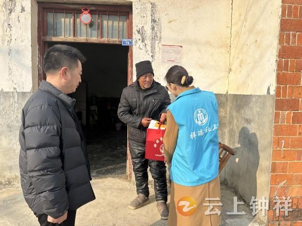 近日,胡集镇社工站组织志愿者开展新春走访慰问活动,为20户低保户送上春节大礼包与关怀,筑牢民生兜底防线。