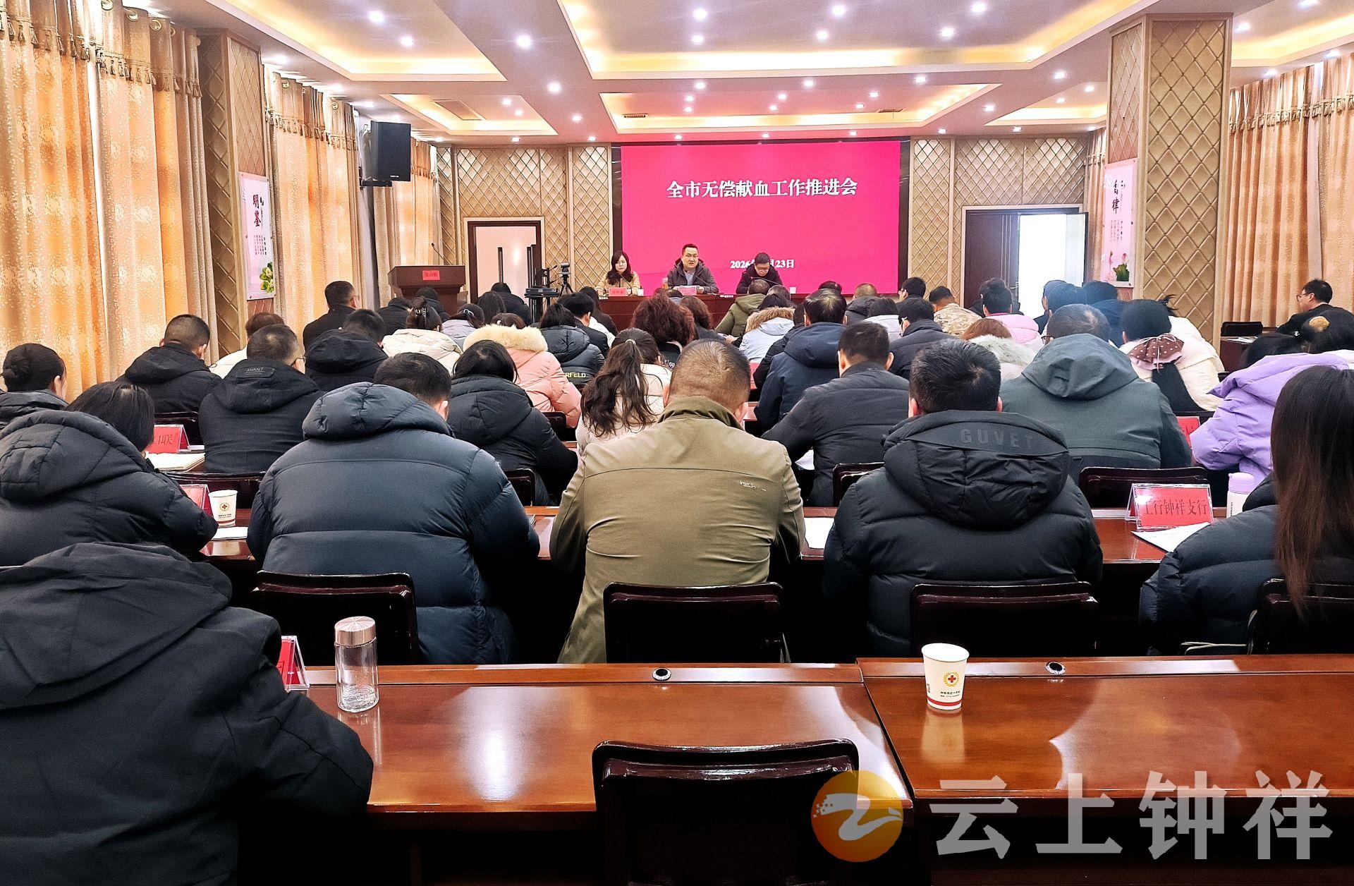 1月23日,钟祥市召开全市无偿献血工作推进会,总结工作、分析形势、明确任务、凝聚合力,全力推动钟祥市无偿献血事业迈上新台阶、取得新突破。市政府副市长、市红十字会会长门克巴依出席会议并讲话。