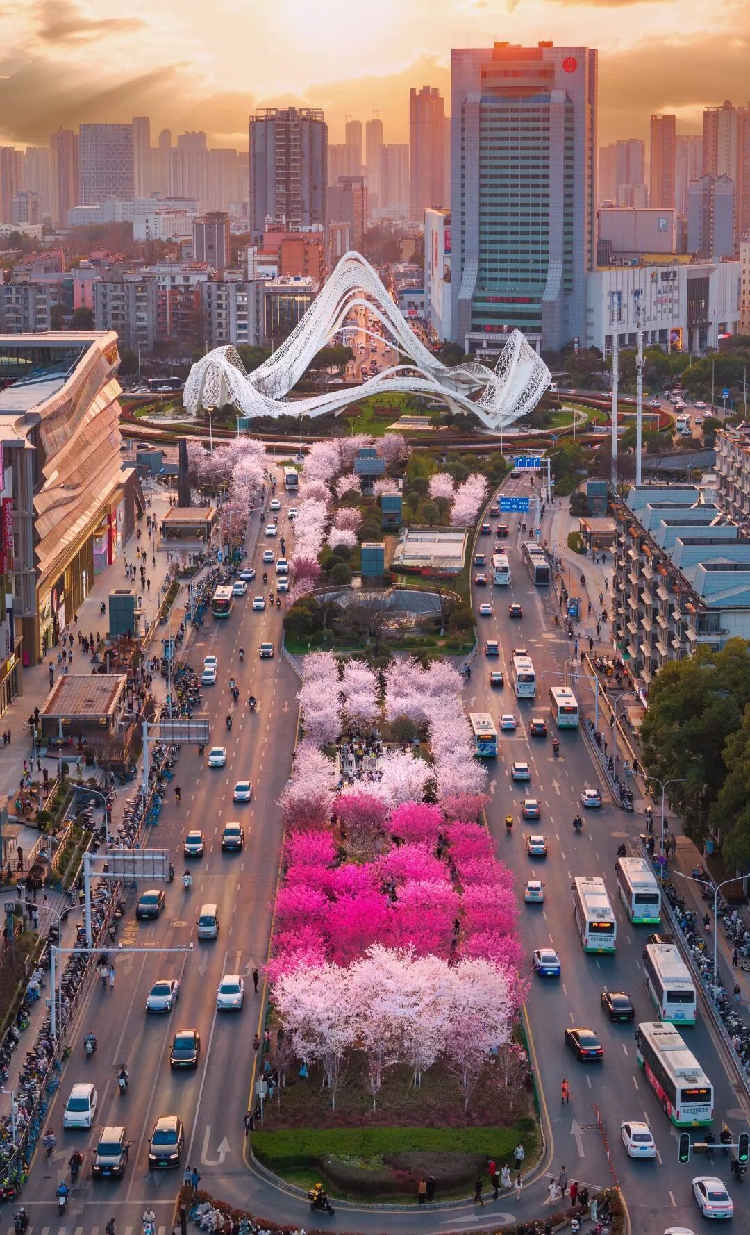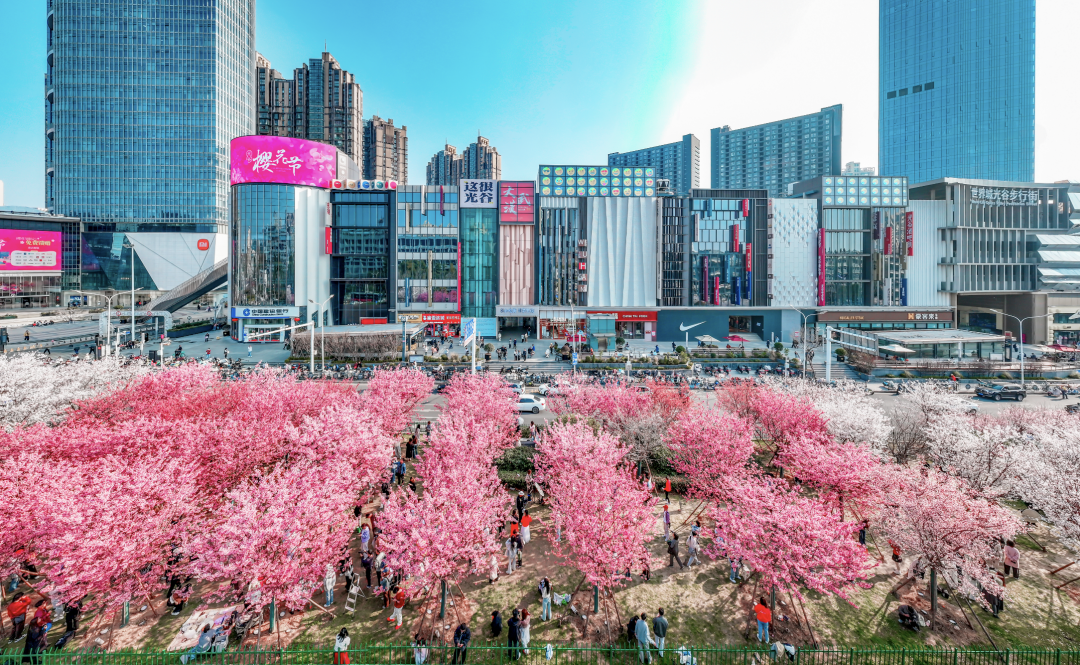 光谷商圈,被樱花包围。记者陈亮 摄