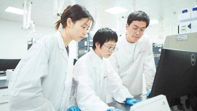 安琪集团博士朱婷婷(中)与团队在进行研发实验。(安琪集团 供图)