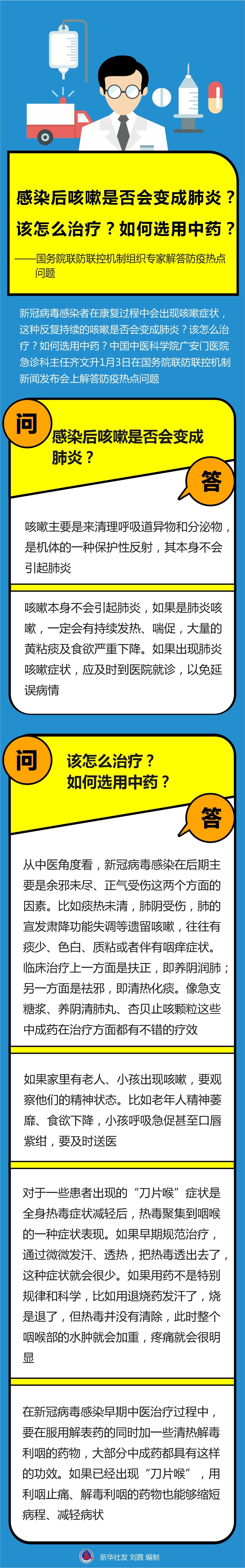 新华社北京1月3日电 题:感染后咳嗽是否会变成肺炎?该怎么治疗?如何选用中药?——国务院联防联控机制组织专家解答防疫热点问题