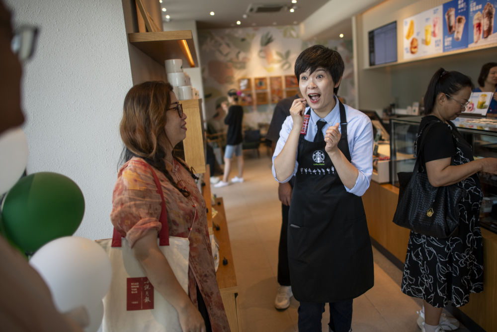 华中首家“无声”星巴克咖啡店18日在武汉市江岸区开业,这也是星巴克在中国大陆的第18家手语门店。店内共有3名听障咖啡师和3名健听咖啡师,而陈媛媛是其中唯一一名通过内部考试晋升的“咖啡大师”。