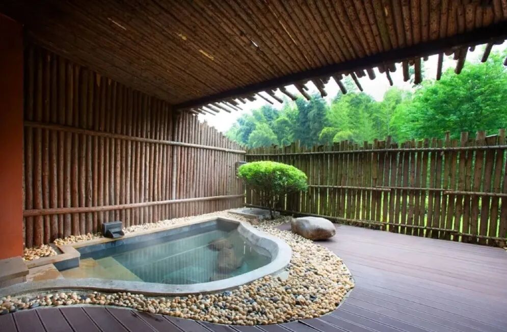 咸宁是温泉资源富集之地,具有面积广、储量大、温度高、水质优等特点。全市共有地热井约60口,地热水年总储量达700万吨,日出水量1.5万吨。大大小小的泡池沿山而设,交错在竹林桂树间,隔绝开尘世喧嚣。