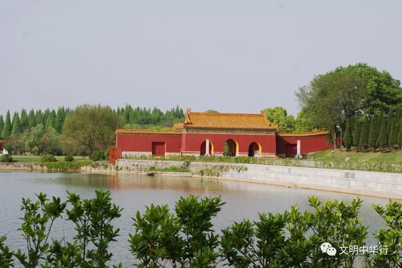 这条河就是九曲河,它全长1596米,在陵区蜿蜒曲折,形成九道弯曲,故而得名。九曲河是显陵陵区的主要排水设施,体现了显陵排水体系的完善与工匠的智慧。在显陵的规划中还建有一大一小两座明塘,在明代帝陵中十分罕见。