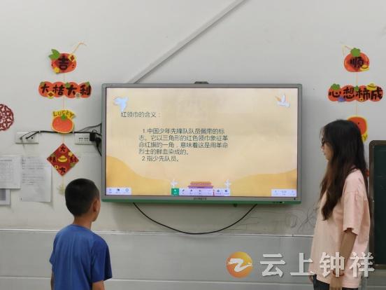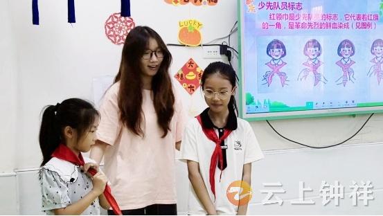 活动中,志愿者以故事讲述和互动问答形式,向孩子们介绍中国少年先锋队历史及有关知识,孩子们听得专注,对“红旗一角”满怀向往。