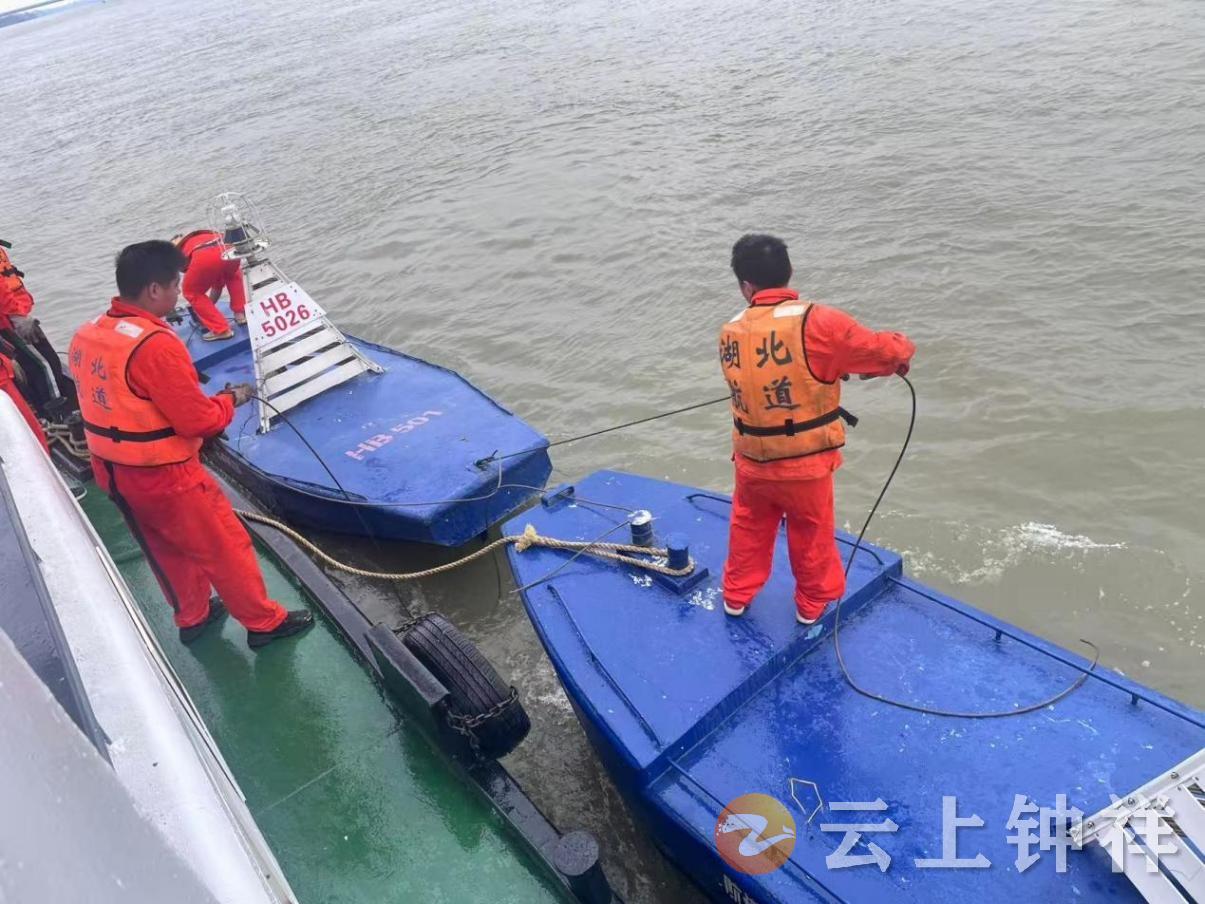 9月25日14时,丹江口水库开启两个深孔泄洪,下泄流量达3100立方米/秒,叠加丹皇区间支流来水,预计28日汉江皇庄段流量将突破3700立方米/秒,2025年汉江秋汛如期而至。为有效应对上游来水快速上涨对航道通航安全及设施设备的影响,钟祥市航道管理局迅速响应,全员投入,对辖区内助航标志、趸船锚泊系缆等设施进行全面调整与收拣,全力保障航道及配套设施安全平稳度汛。