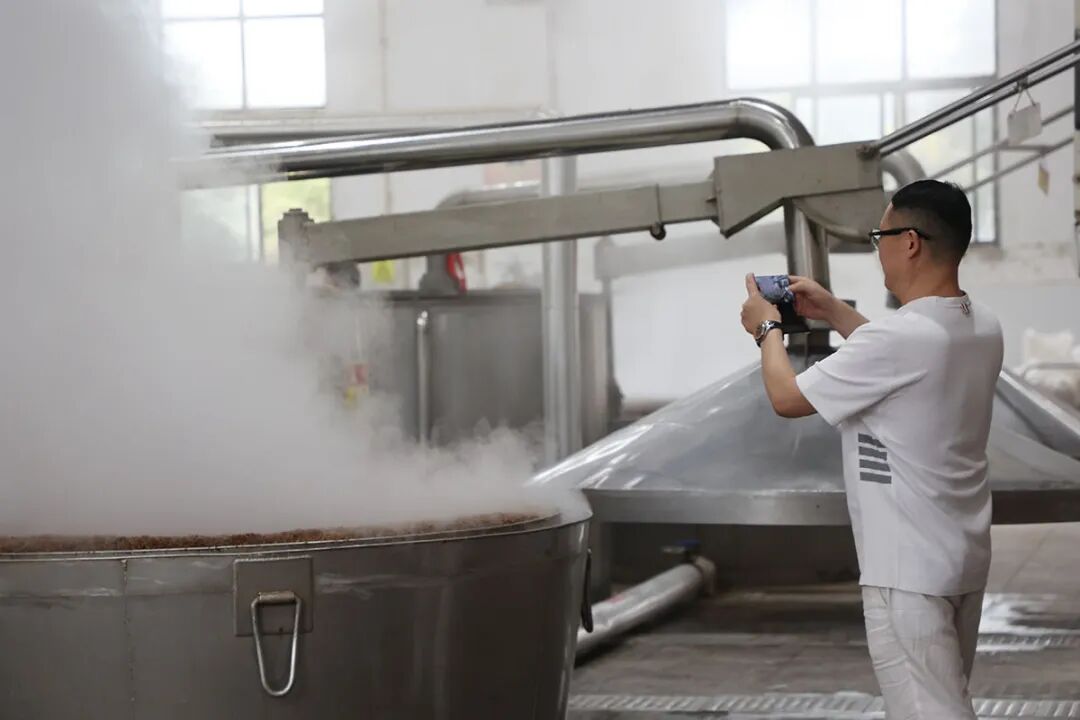 众人近距离观摩美酒从原料到佳酿的诞生过程,沉浸式感受着传统酿造技艺的独特魅力,以及流淌在车间里的浓厚匠心氛围。