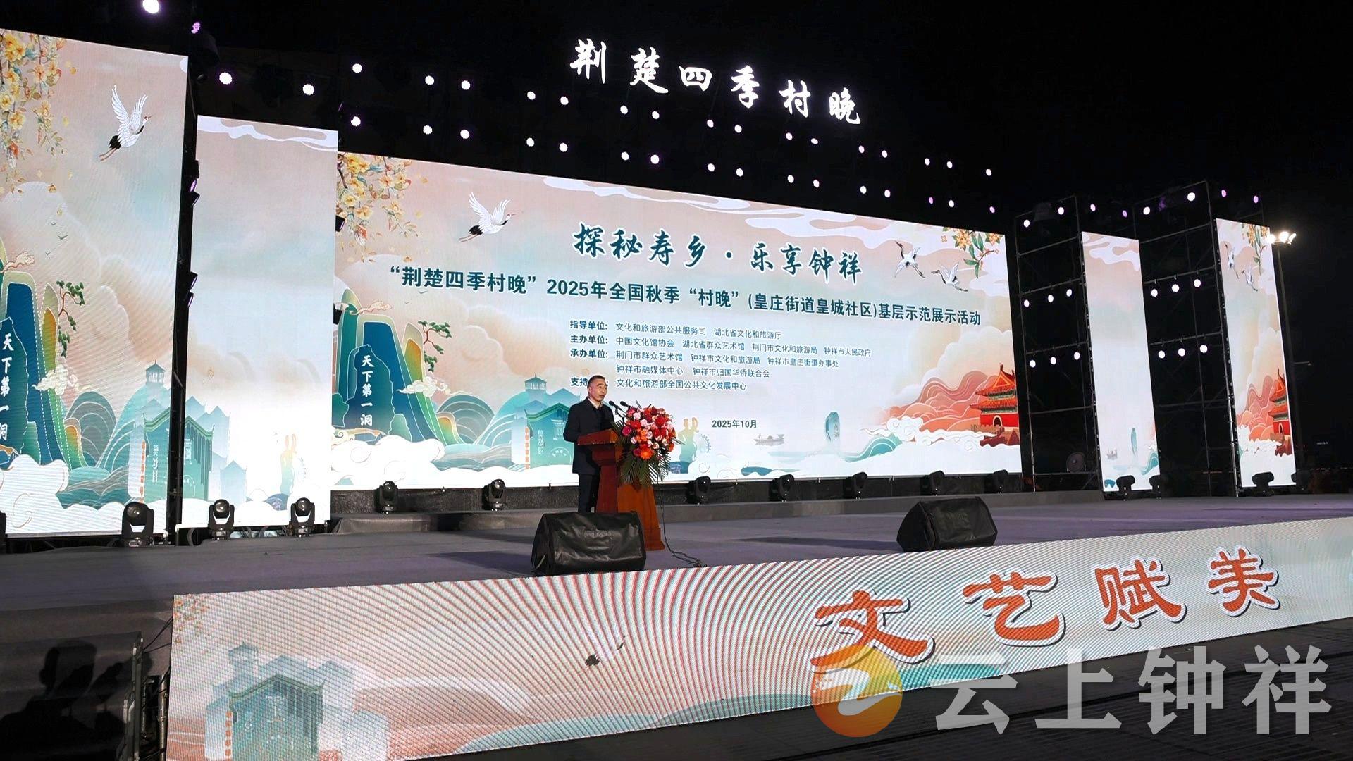 10月24日晚,由文化和旅游部公共服务司、湖北省文化和旅游厅指导,中国文化馆协会、湖北省群众艺术馆、荆门市文化和旅游局、钟祥市人民政府主办的“荆楚四季村晚”2025年全国秋季“村晚”(皇庄街道皇城社区)基层示范展示活动在市体育中心精彩上演,这场以“探秘寿乡·乐享钟祥”为主题的文化盛宴,通过线上线下联动,让全国观众共同感受了长寿之乡的独特魅力。