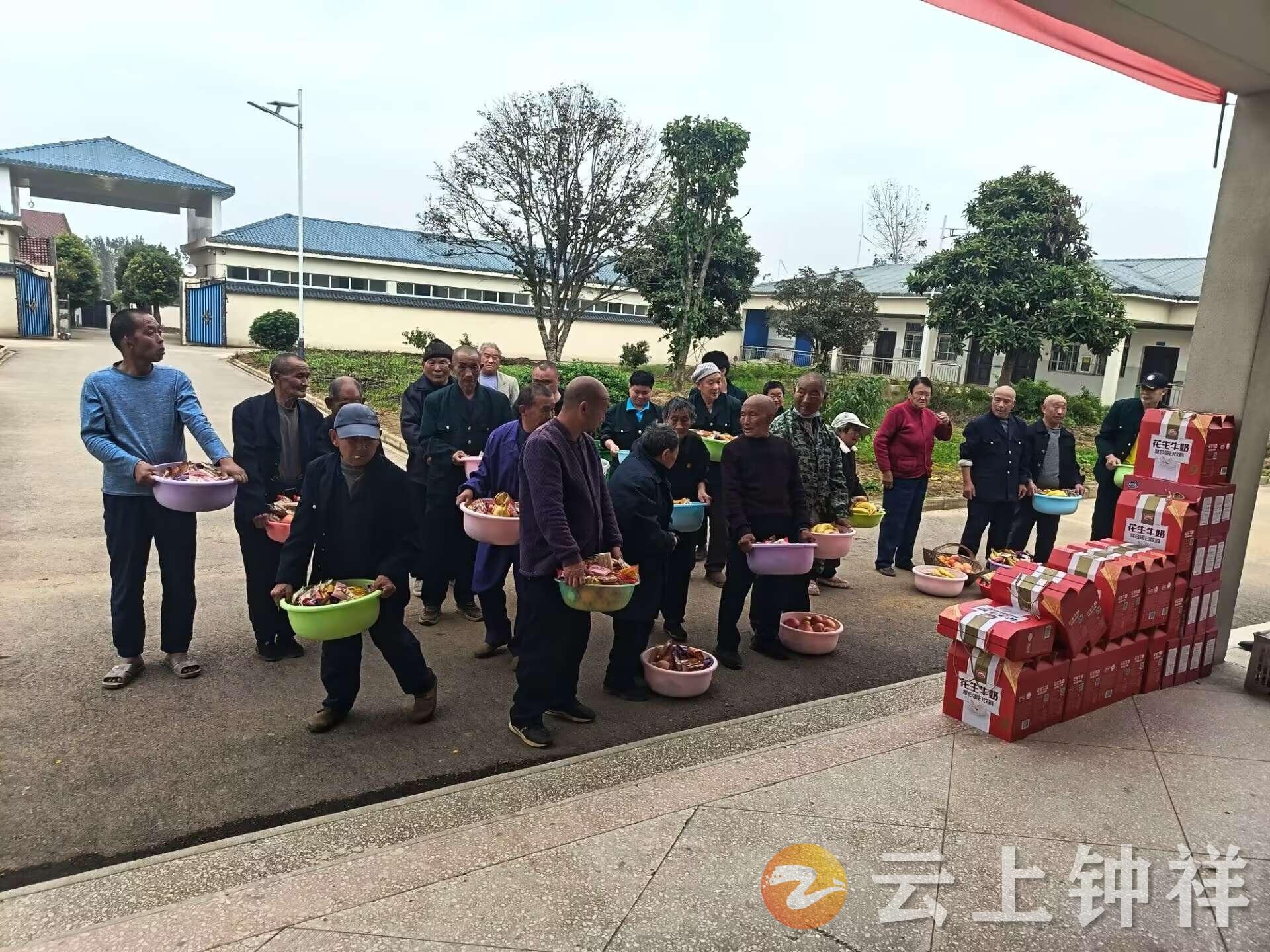 活动以镇文化站的精彩文艺演出开篇,歌声与舞姿为老人们送上文化盛宴。随后,长寿镇爱家超市、小堰沟果树种植专业合作社、中国邮政长寿支局、汤林村委会等爱心单位及企业捐赠了米、面、油、肉、零食等物资;福利院为老人们分发了饼干、水果、牛奶等食物。中午,食堂还特意准备了香喷喷的蒸肉作为“重阳加餐”,让老人们感受温暖。