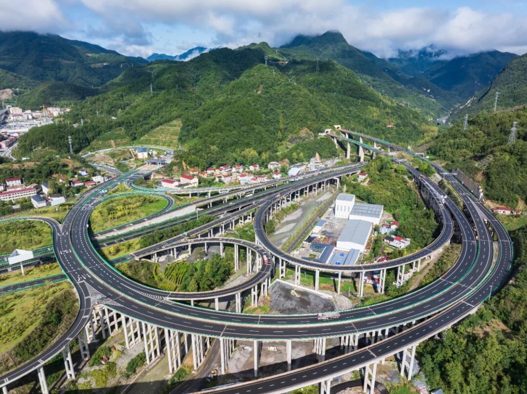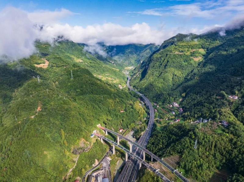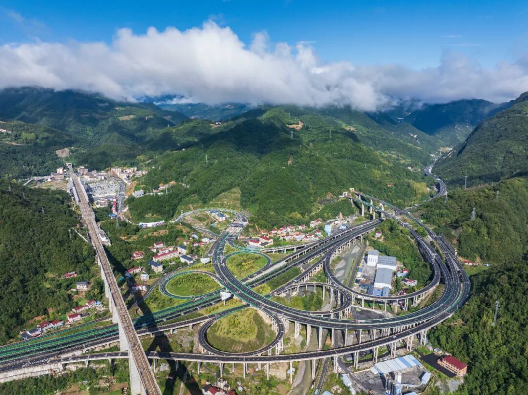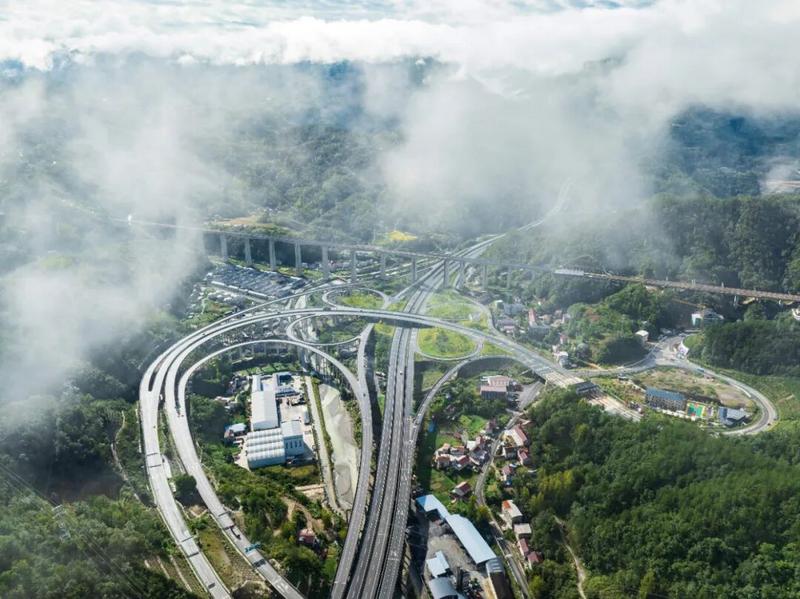 雨后初晴,在保神高速与呼北高速交会处的后坪互通枢纽周边,青山、云雾与纵横的路网相映,宛如仙境。保神高速公路五道峡收费站车流不息,小汽车、客车、货车等往来穿梭,一派繁忙景象。