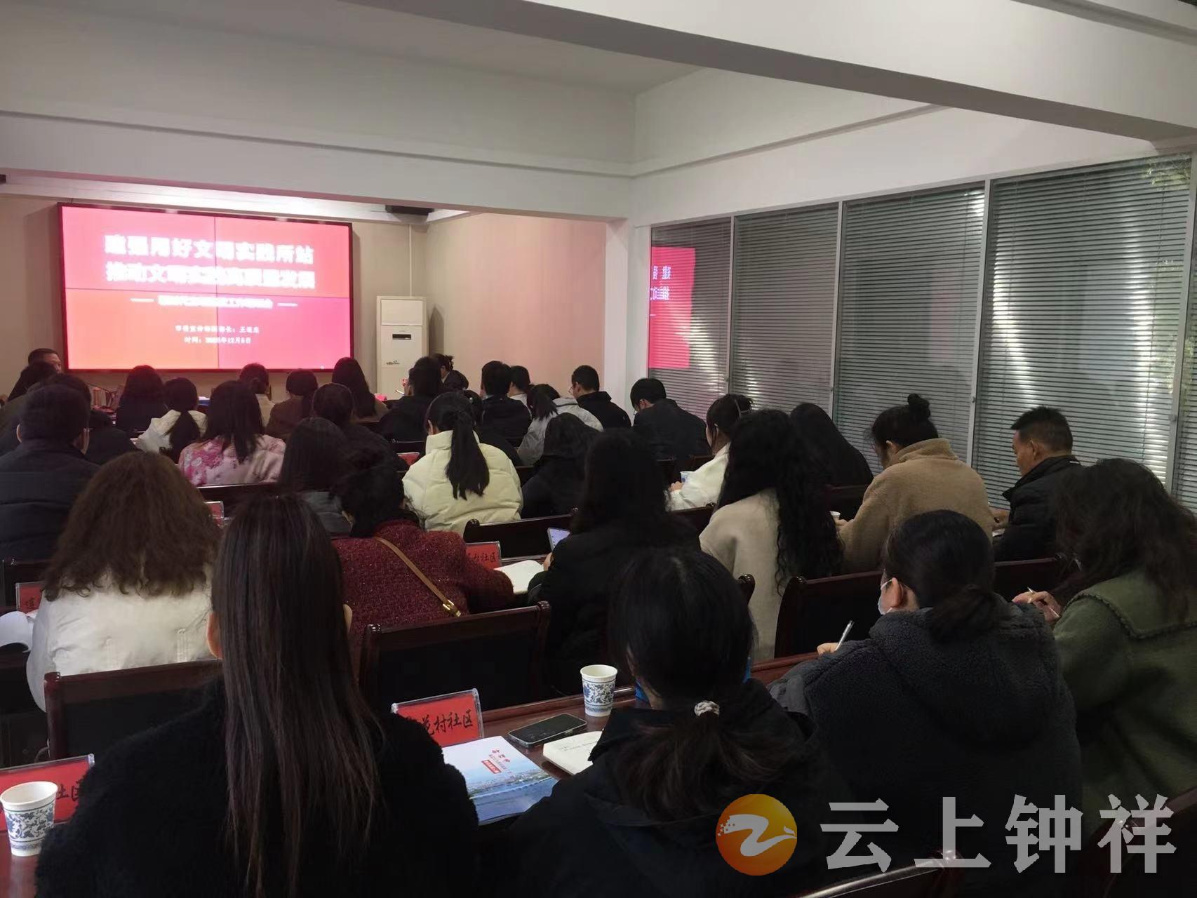 12月5日,钟祥市新时代文明实践中心举办学习贯彻党的二十届四中全会精神宣讲报告会暨业务骨干培训会。市委常委、市委宣传部部长冯玉霞作专题辅导报告。