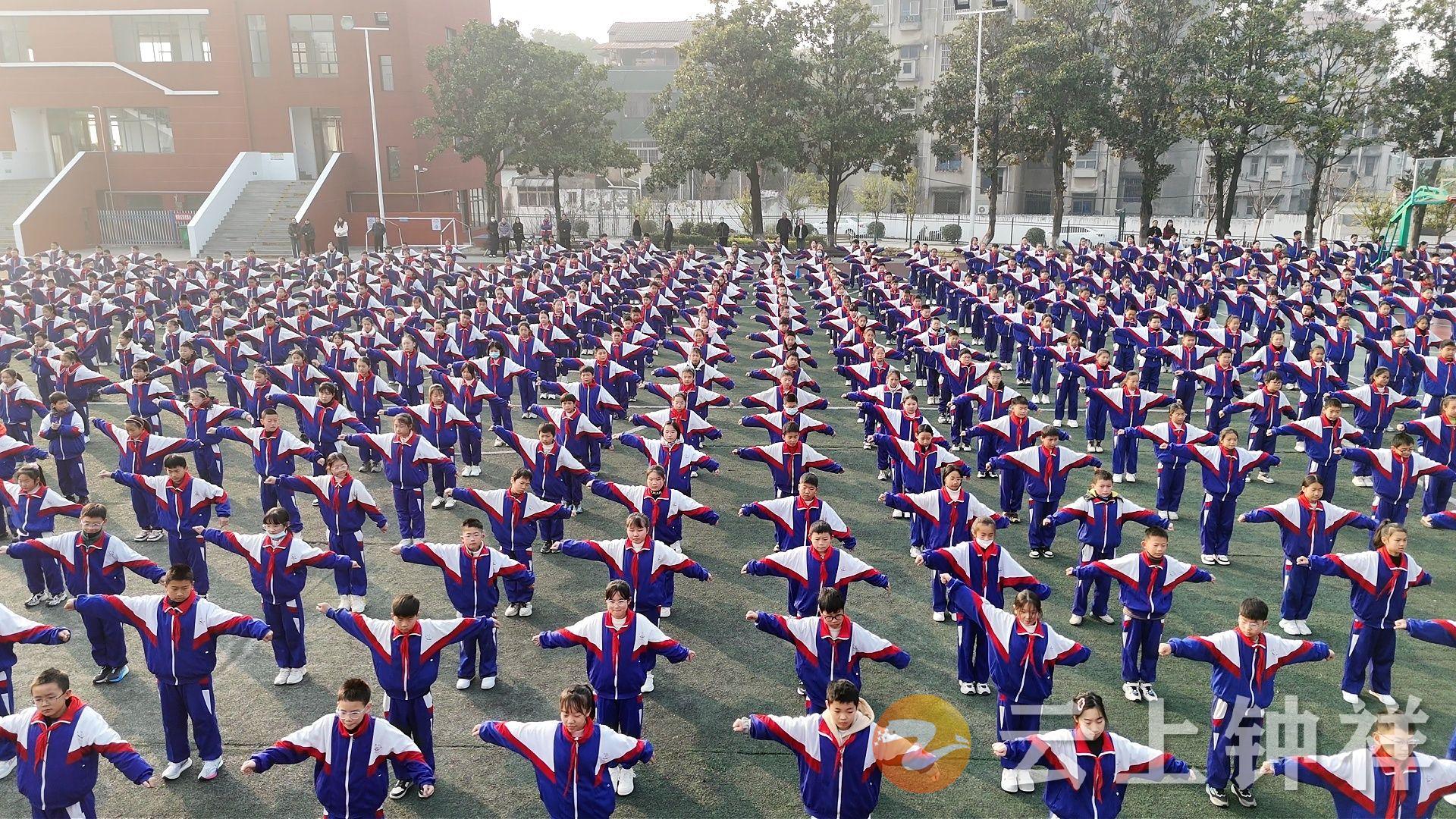 每天上午的大课间时分,钟祥市中果园小学的操场上便呈现出一派生机勃勃的景象。学生们整齐列队,在明快的音乐节奏中,时而打出铿锵有力的武术操,时而在跑道上快乐奔跑,更有英姿飒爽的剑术练习穿插其中。这一幕,已成为该校落实“双减”政策、深化素质教育的一道亮丽风景线。