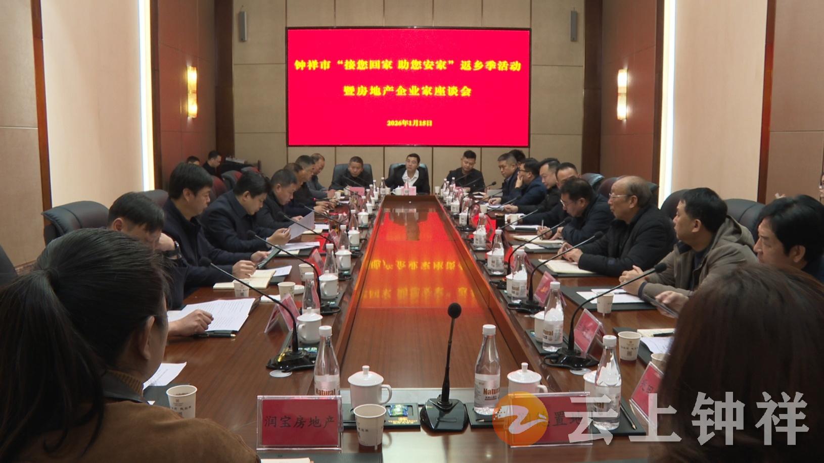1月15日,钟祥市召开“接您回家 助您安家”返乡季活动暨房地产企业家座谈会。市房产服务中心、市自然资源局相关负责人及全市20余家房地产企业代表齐聚一堂,围绕市场运行、政策落地、城市规划及地块开发等议题进行了深入交流,副市长胡涛参加会议。