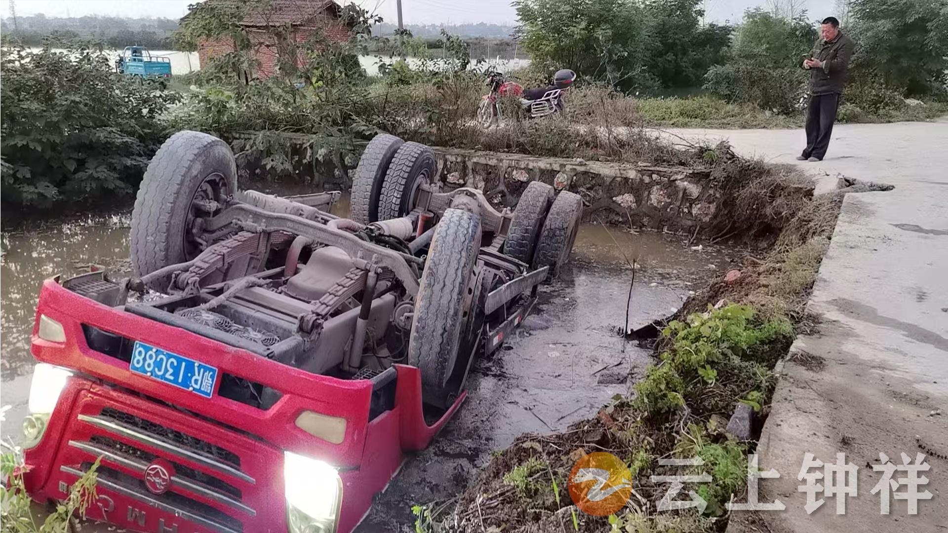 当日,李宗超按照巡查计划在辖区七组精养鱼池路段开展道路安全排查,一声惊呼打破平静。他发现一辆货车四轮朝天翻入水沟,车主站在沟边焦急无措。确认无人员伤亡后,李宗超立即安抚车主情绪,通过网格工作群上报情况、呼叫3名网格员携带绳索支援,同时联系村“两委”干部,协调农户及挖掘机操作人员到场协助。