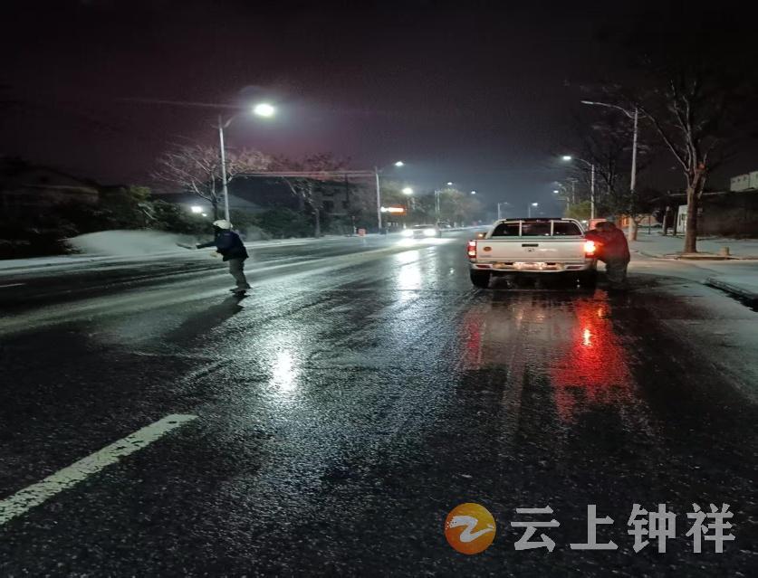 在1月19日夜间,南湖新区就已经开展行动。新区安办、城管办与公安交警部门协同联合,针对南湖河桥等四座桥梁等易结冰路段,连夜开展工业盐泼洒作业。社区“红马甲”志愿者也主动上路,配合全员在岗的交警、辅警疏导交通,提醒过往车辆减速慢行、有序通行。