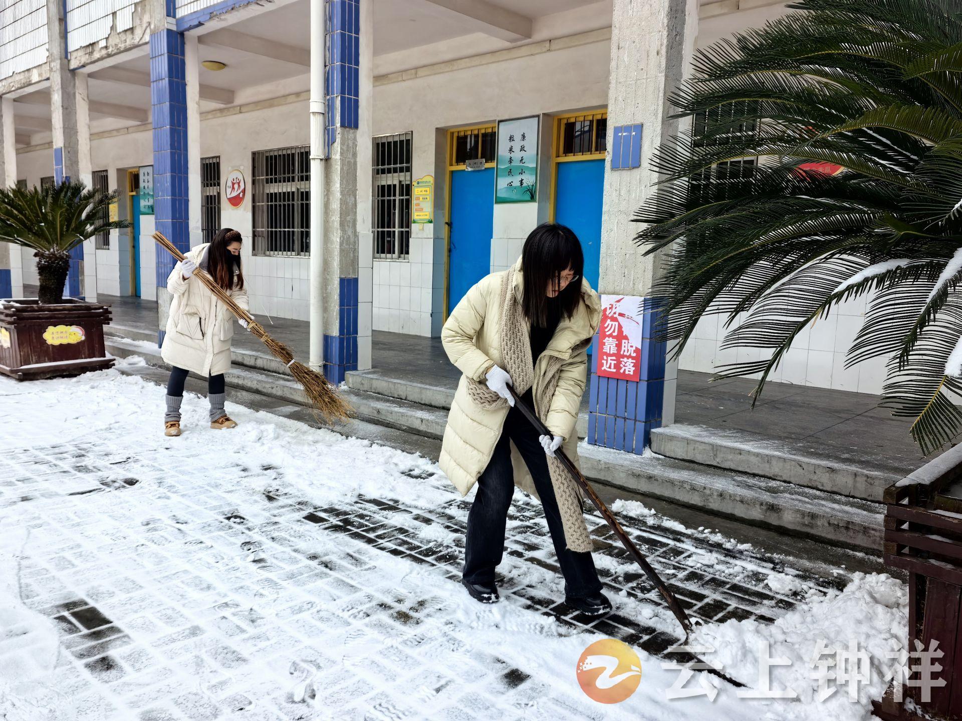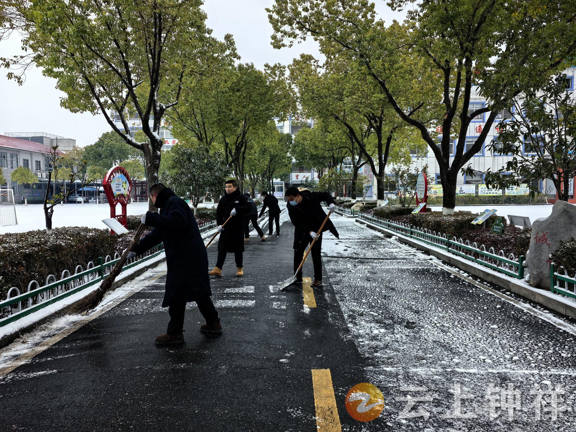 1月20日,钟祥市承天小学全体党员干部主动出击,开展校园及周边道路破冰除雪活动,用实际行动筑牢校园安全防线。