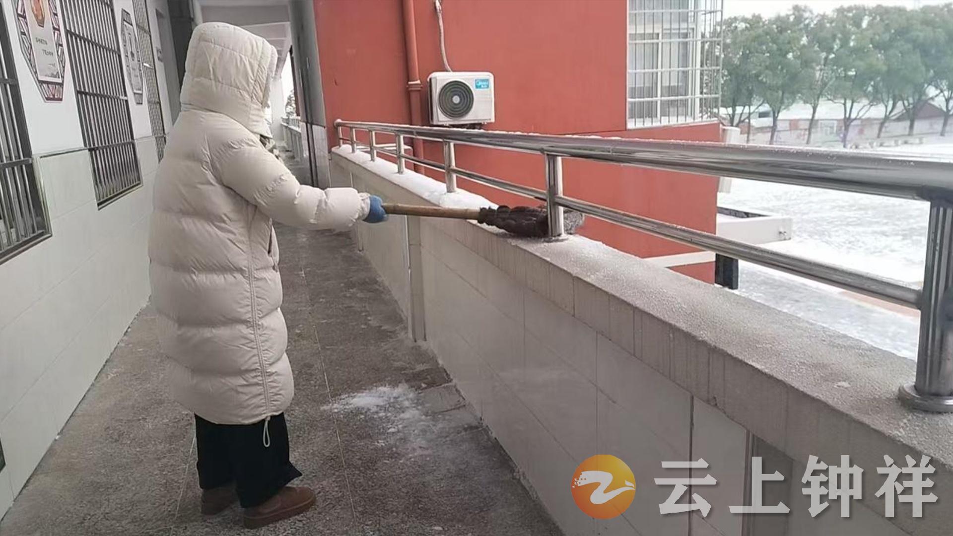 活动中,各部门工作人员热情高涨、分工协作,聚焦校门口、食堂出入口、教室过道、上下楼梯等师生高频出入区域,手持扫帚、铁锹等工具有序清扫积雪、清除积冰,高效清理出安全通行区域。