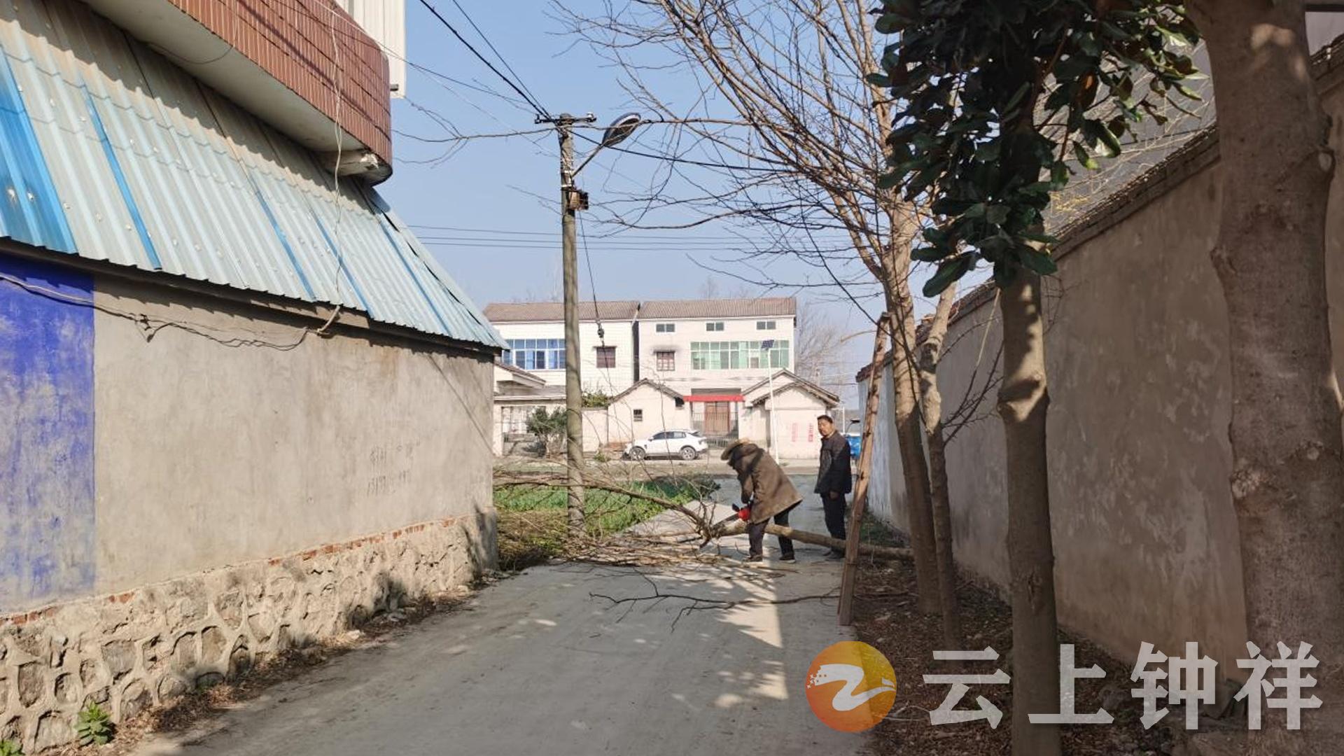 发现险情后,网格员姚永发第一时间在现场设置临时警示标识,引导村民绕行避险,并迅速联系村内劳力组建应急清理小队,携带工具赶赴现场处置。针对断枝粗壮沉重的情况,清理小队采取“分段切割、逐段清运”的方案,分工协作开展切割、抬运、清扫工作,整个作业紧张有序。