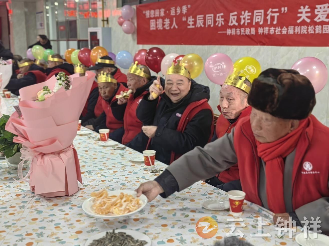 1月28日,钟祥市民政局、市社会福利院联合市馨泉社会工作服务中心,在市社会福利院温情开展“接您回家•返乡季”——困境老人“生辰同乐 反诈同行”关爱活动,以实际行动传递温暖、守护安全。
