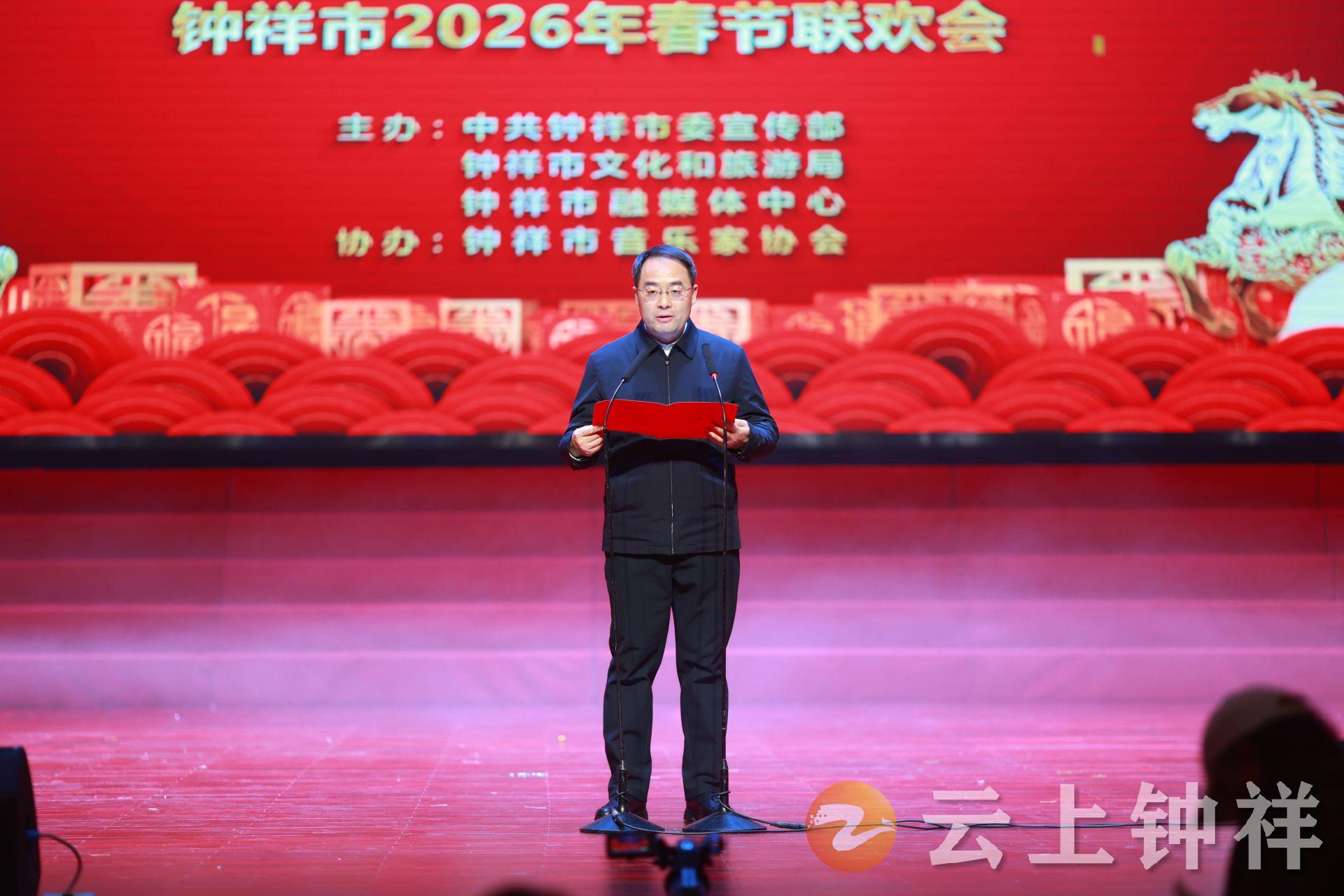 2月8日,钟祥市“春满寿乡 接您回家”2026年春节联欢会在市人民大礼堂隆重举行。市委书记张勇出席并致辞,李鹏、粟建湘、王小庆、白海峰等市“四大家”领导出席联欢会,与全市各界人士欢聚一堂、共贺新春。