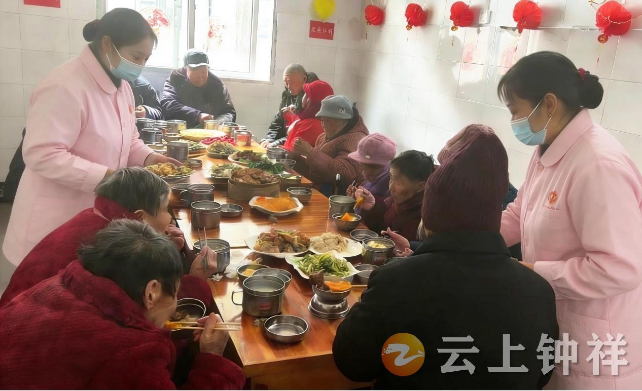 活动现场喜气洋洋,红灯笼、福字装点出浓厚的节日氛围。团年宴上,工作人员为老人们准备了营养均衡、软糯可口的团圆饭菜,老人们围坐在一起话家常、送祝福、尝美食,欢声笑语不断。护理员们全程贴心照料,用实际行动让老人们感受到家一般的温暖,也让远在他乡的儿女倍感安心。