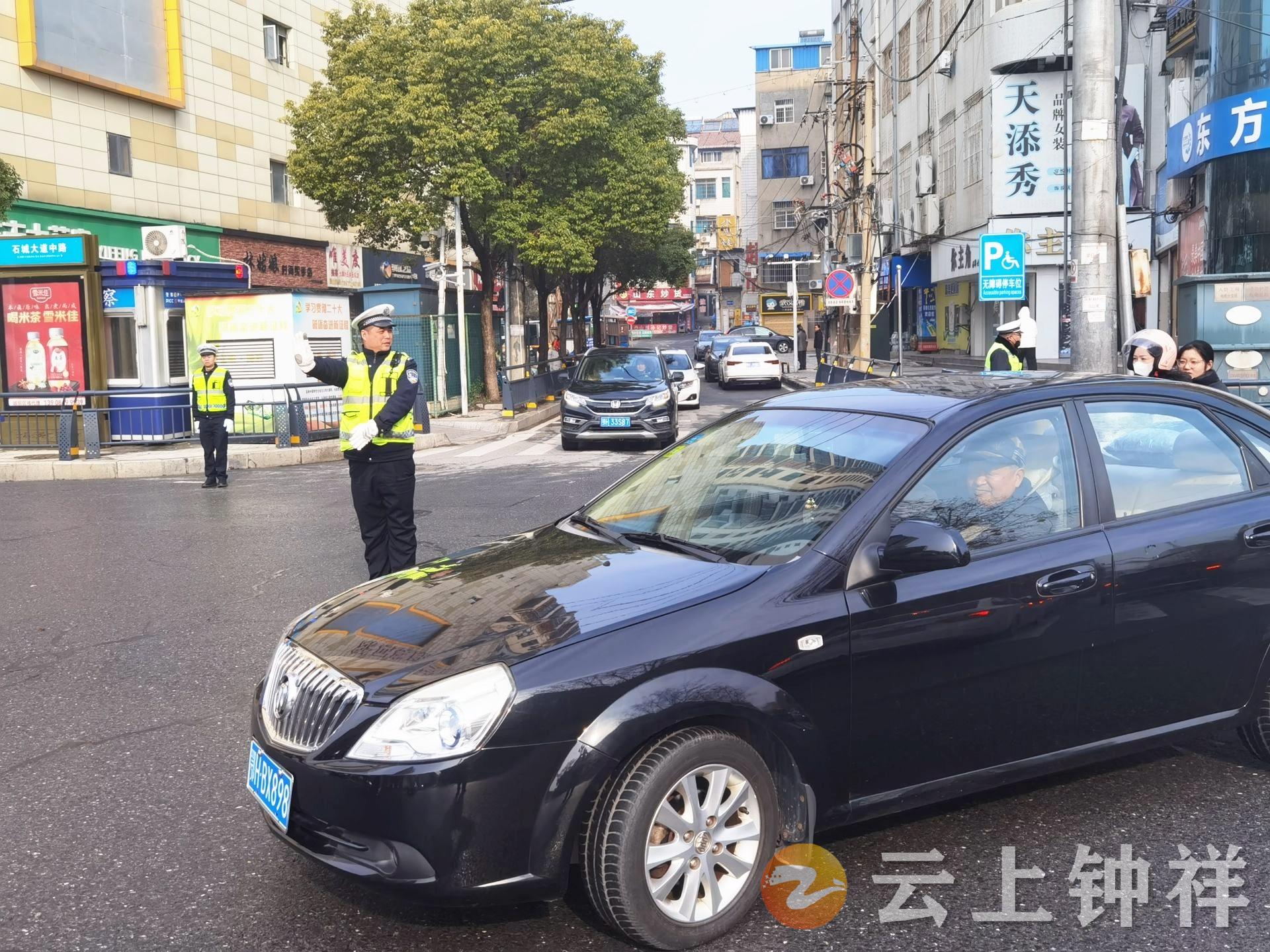 针对大年初一市民出行集中的特点,钟祥城区阳春大街、莫愁大道等核心商业区周边道路,以及王府大道、校场路等进出城主干道,成为交通疏导的重中之重。执勤民警通过手势指挥和喊话器提示,引导车辆有序通过,同时对违停车辆及时劝离,保障道路畅通。