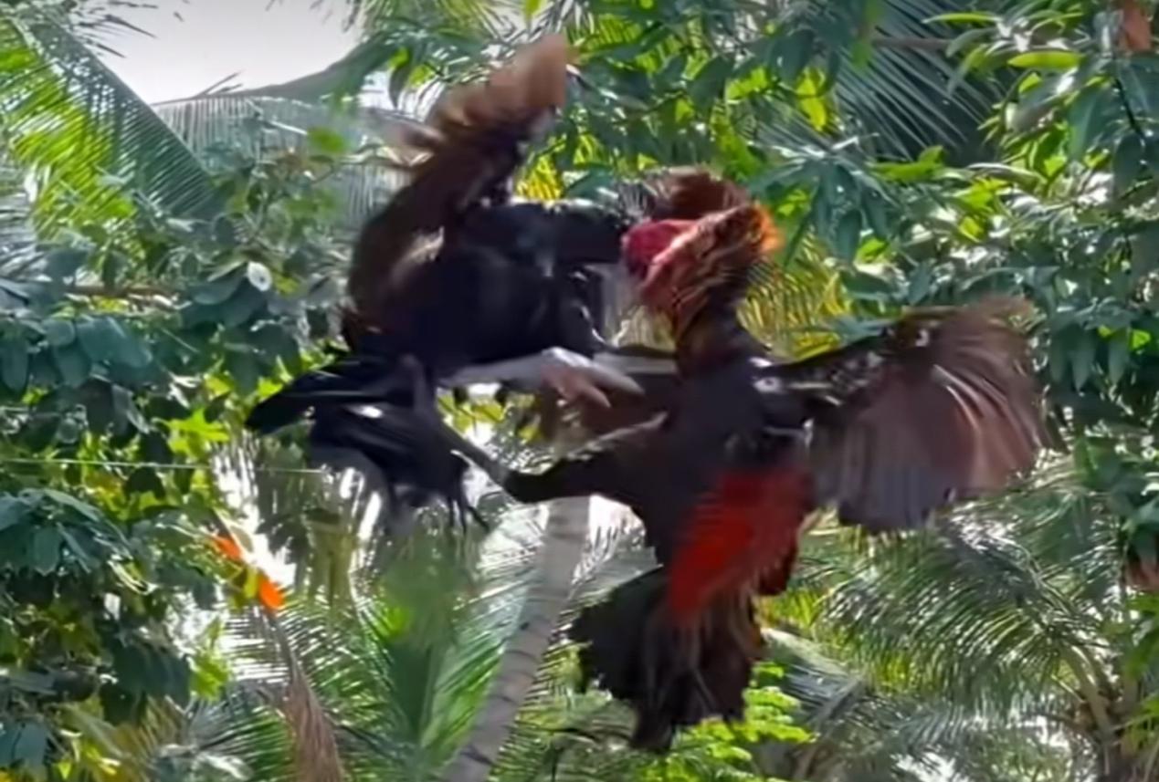 从落凤坡出发,我们走步行近道,来到“星野动物剧场”,上午11点是动物表演的时间。首先上场的是“斗鸡”,工作人员抱着两只红冠花尾大公鸡,在舞台上刚放下,两只几乎同时飞奔着冲对方,均有一举就将对方冲倒之势。当两只鸡身体快接触上时,均高高飞起,用尖尖的嘴啄向对方头部,同时用尖利的爪子抓向对方。双方腹部的羽毛或许就是这样被抓没的吧。经过好几个回合的搏斗,两只鸡没有哪只认输的迹象。最后还是由工作人员强行给分开才作罢。
