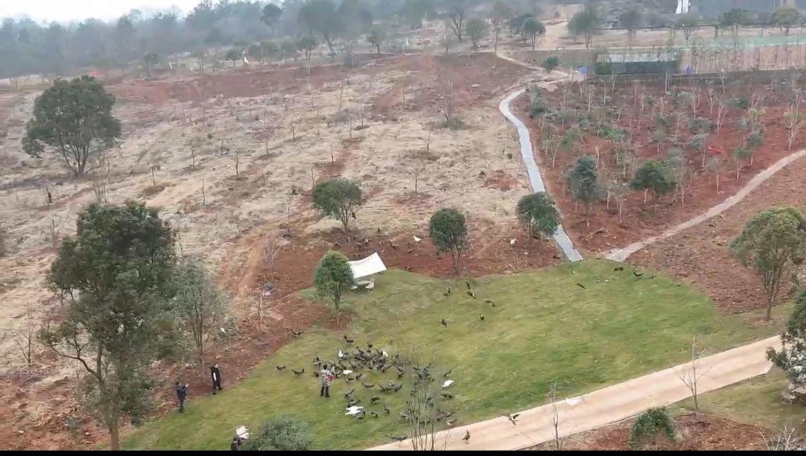 上午10:30是景区孔雀第一次“东南飞”的时间,我们一行人依旧乘坐观光车到了“落凤坡”,此时落凤坡已挤满游客,我们只好在外围找好观看角度,打开了手机录像。随着景区工作人员几声哨响,远在300米开外的起飞台上,300多只各色孔雀相继向我们飞来。那一双双展开的翅膀,一次次上下的舞动,一个个由小变大的身影,令人震撼和惊喜。这也是我们所见规模最大、飞行距离最远的孔雀齐飞场景。