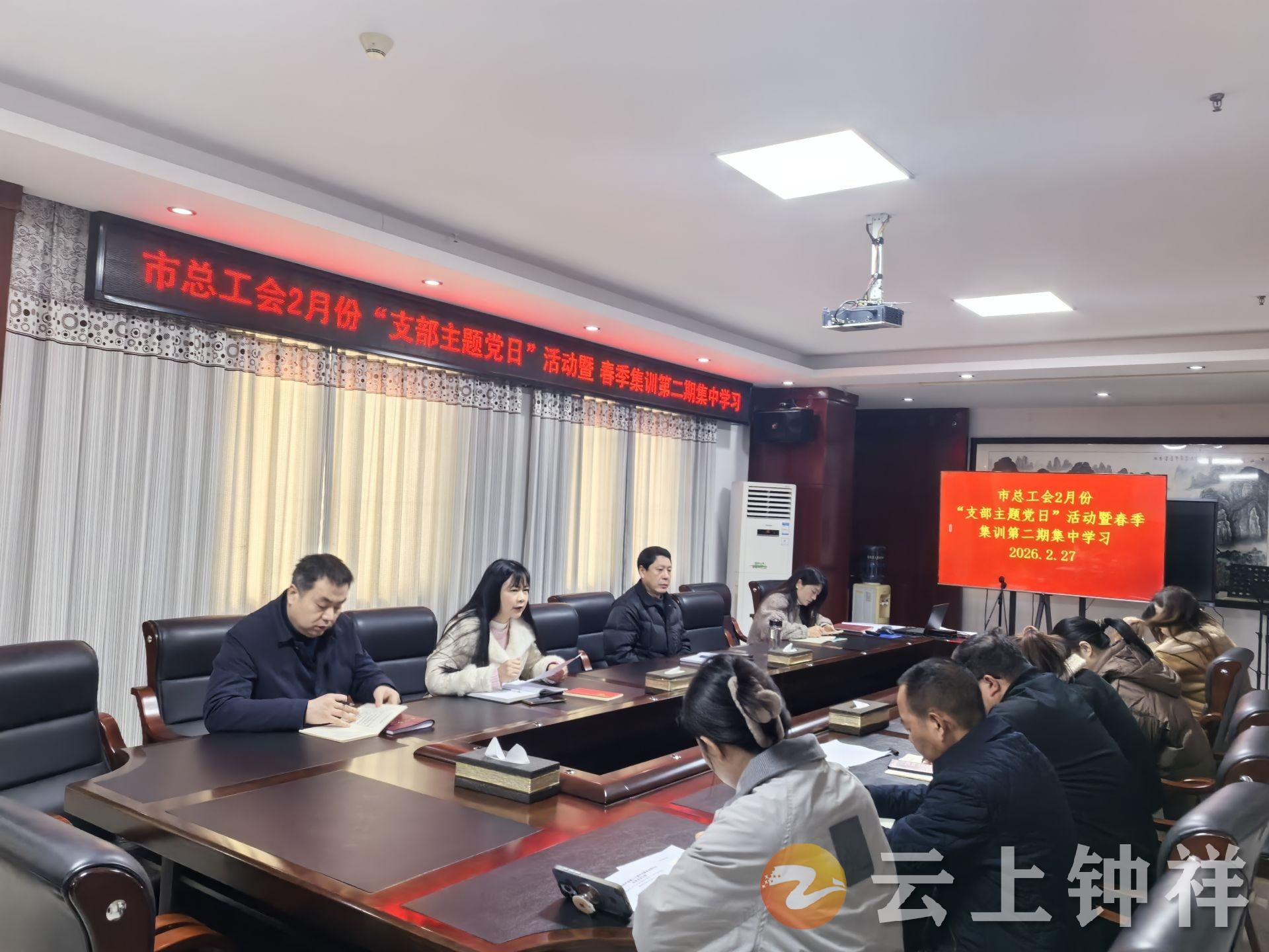 2月27日,钟祥市总工会开展2月份“支部主题党日”暨春季集训第二期学习,全体干部职工集中观看专题视频《“十五五”时期经济社会发展的指导思想、重大原则和根本保证》《“十五五”时期经济社会发展的重大战略任务》,并结合各自岗位职责,围绕“工会如何在‘十五五’发展中发挥作用”展开深入讨论。