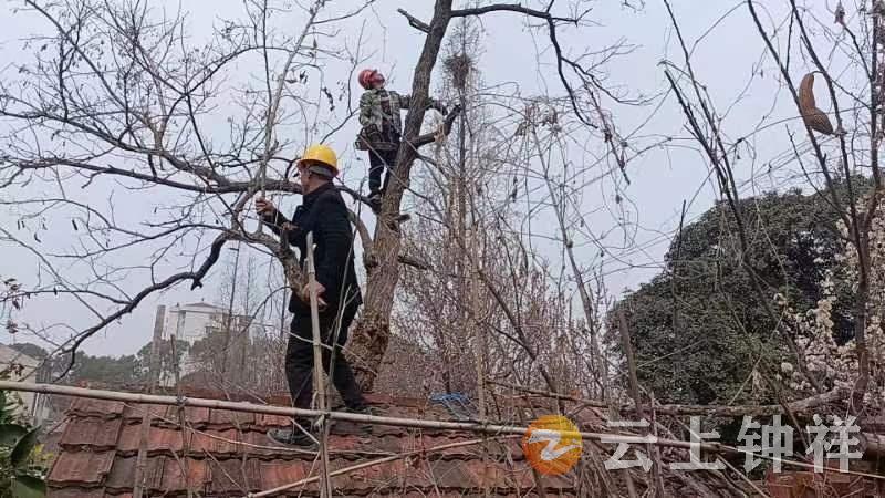 近日,郢中街道中果园社区居民龚某向网格员陈丽霞反映,其屋后一棵大枯树倾斜,横跨两邻房屋之上,存在砸毁房屋、危及安全的隐患。